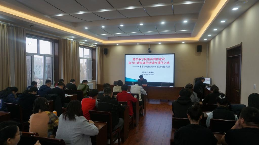 10月30日下午,学校党委书记孙国权在办公楼4楼会议室为分管部门和联系学院党员师生代表、全校党支部书记代表及所在支部全体党员讲授了铸牢中华民族共同体意识专题党课。