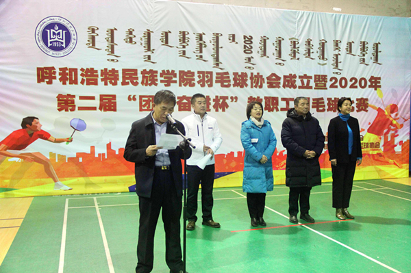 为铸牢中华民族共同体意识,进一步丰富教职工的文化生活,切实提高教职工的身体素质,推动“中华民族一家亲,同心共筑中国梦”的理念,由学校工会主办,羽毛球协会承办的beat365英国官方网站羽毛球协会成立暨2020年第二届“团结奋进杯”教职工羽毛球比赛开幕式11月25日下午在北校区体育馆一楼举行。学校党委副书记、校长格日乐图,党委副书记胡春梅,副校长纳丽娜出席开幕式。学校各职能部门和分工会主席、全体运动员、裁判员和部分学生代表150余人参加了开幕式。开幕式由学校党委委员、党政办主任朝格吉乐图主持。