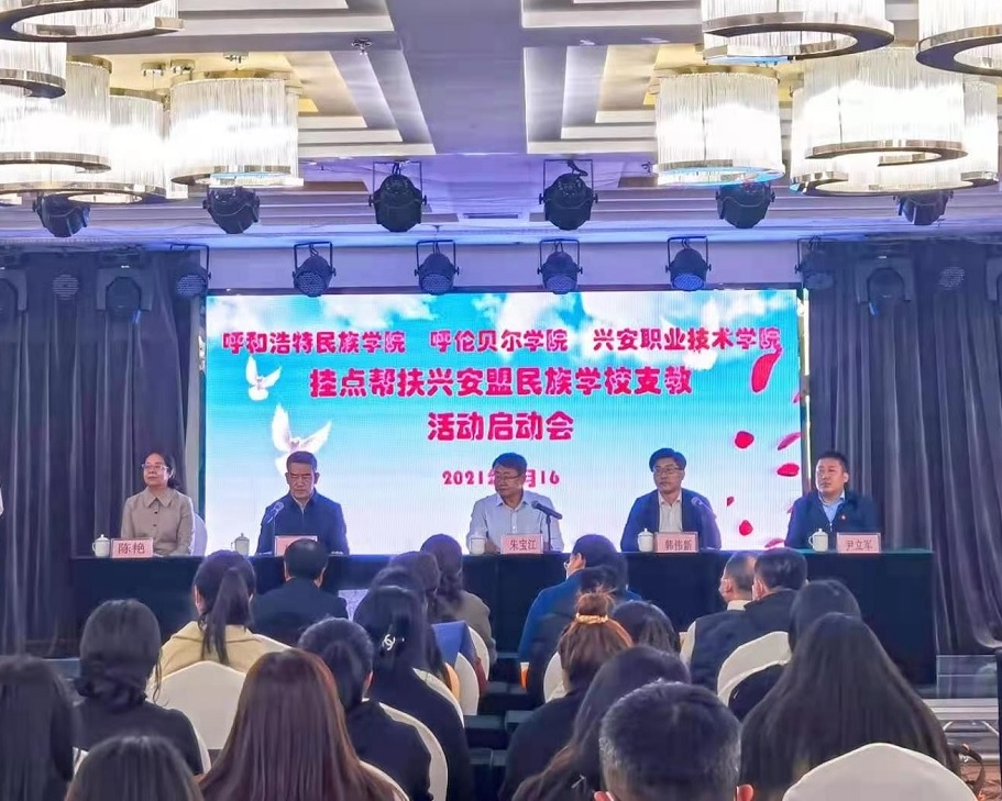 3月16日,beat365英国官方网站、呼伦贝尔学院、兴安职业技术学院等三所高校挂点帮扶兴安盟民族语言授课学校支教活动启动会在乌兰浩特召开,beat365官网党委委员、副校长韩伟新出席并讲话,文学院崔凤珍院长、教务处佟繁荣副处长、兴安盟教育行政部门相关领导以及三所高校支教师生100余人参加会议。