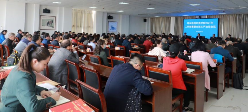 学校党委副书记、校长格日乐图代表学校党委、行政全面回顾了2020年学校各项工作,并从加强党的全面领导、加强党的政治建设、强化理论武装、切实铸牢中华民族共同体意识、认真开展党史学习教育、提升思想政治工作质量、加强学校文化建设、确保意识形态安全、大抓基层党建、提升干部队伍能力素质、不断加强党风廉政建设、加强和改进统战工作、加强群团与离退休工作等方面部署了2021年党建工作,从编制“十四五”规划、提升学科建设水平、提高教育教学质量、推进校内双语教学改革、增强科研创新能力、优化师资队伍结构、提升教师队伍整体素质、加强学生管理工作、扩大毕业生就业、深化交流合作、提升综合服务保障水平等方面部署了2021年中心工作。格校长还就如何认识和推进申硕工作,如何加强一流专业建设、“四新”专业建设,如何推进转型发展等工作进行了重点强调。