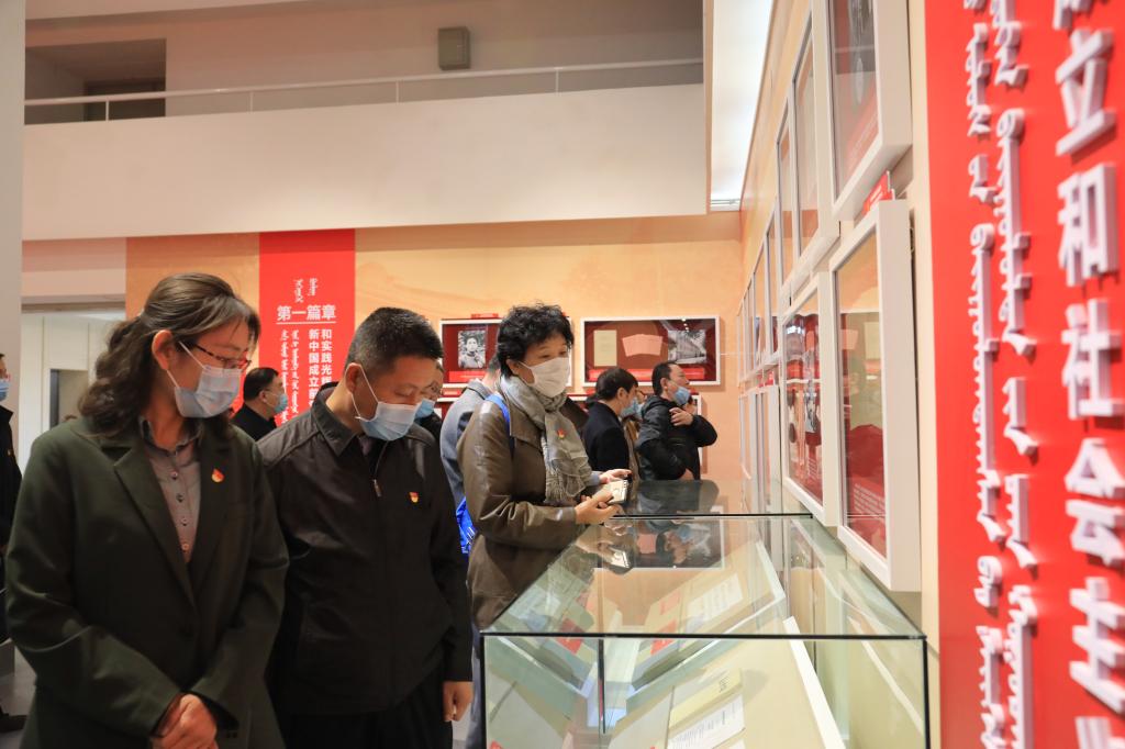 为铭记光辉历史、坚守初心使命,扎实推进beat365官网党史学习教育深入开展,4月2日上午,学校党委理论学习中心组成员,副处级以上干部赴内蒙古展览馆参观“铸牢中华民族共同体意识——党的民族理论和民族政策档案文献展”,以“走出去”的方式就近就便开展党史学习教育现场教学活动。学校党委书记孙国权,党委副书记、校长格日乐图,党委副书记胡春梅,党委委员、副校长贺希格吉雅,党委委员、副校长韩伟新,党委委员、纪委书记王冬梅出席活动。