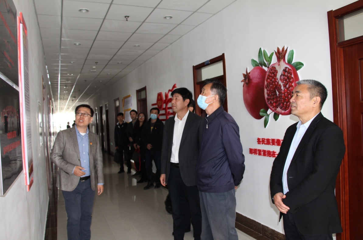 调研期间,张力理事长一行在党委书记孙国权,党委副书记、校长格日乐图,党委委员、副校长韩伟新的陪同下,参观了校史馆和自治区民委铸牢中华民族共同体意识研究基地(中心),观看了beat365官网民族团结进步工作展板。