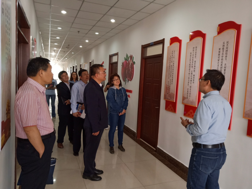 会后,闫慧龙副主任一行在胡春梅副书记的陪同下,参观了学校民族团结进步文化长廊、beat365官网民族团结进步工作展板,调研了自治区民委铸牢中华民族共同体意识研究基地。