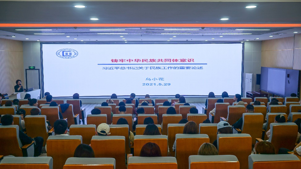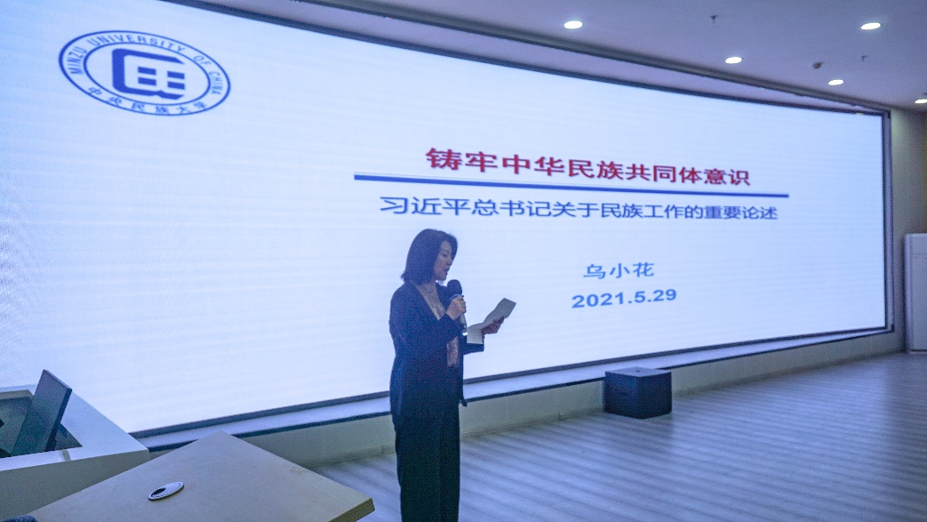 乌小花教授从习近平总书记关于民族工作重要论述的历史背景、丰富内涵、理论体系、时代价值等方面,系统阐释铸牢中华民族共同体意识的必要性,解读新时代民族工作面临的形势,强调树立正确的国家观、民族观、历史观、文化观的重要性。乌小花教授指出,习近平总书记关于民族工作的重要论述是在继承中国共产党民族理论政策的基础上,逐步形成的以“铸牢中华民族共同体意识”为核心内容的马克思主义民族理论中国化最新成果。铸牢中华民族共同体意识是习近平总书记基于民族工作历史新方位作出的重大理论创新,这是党的民族理论政策在新时代创新发展的重要标志。