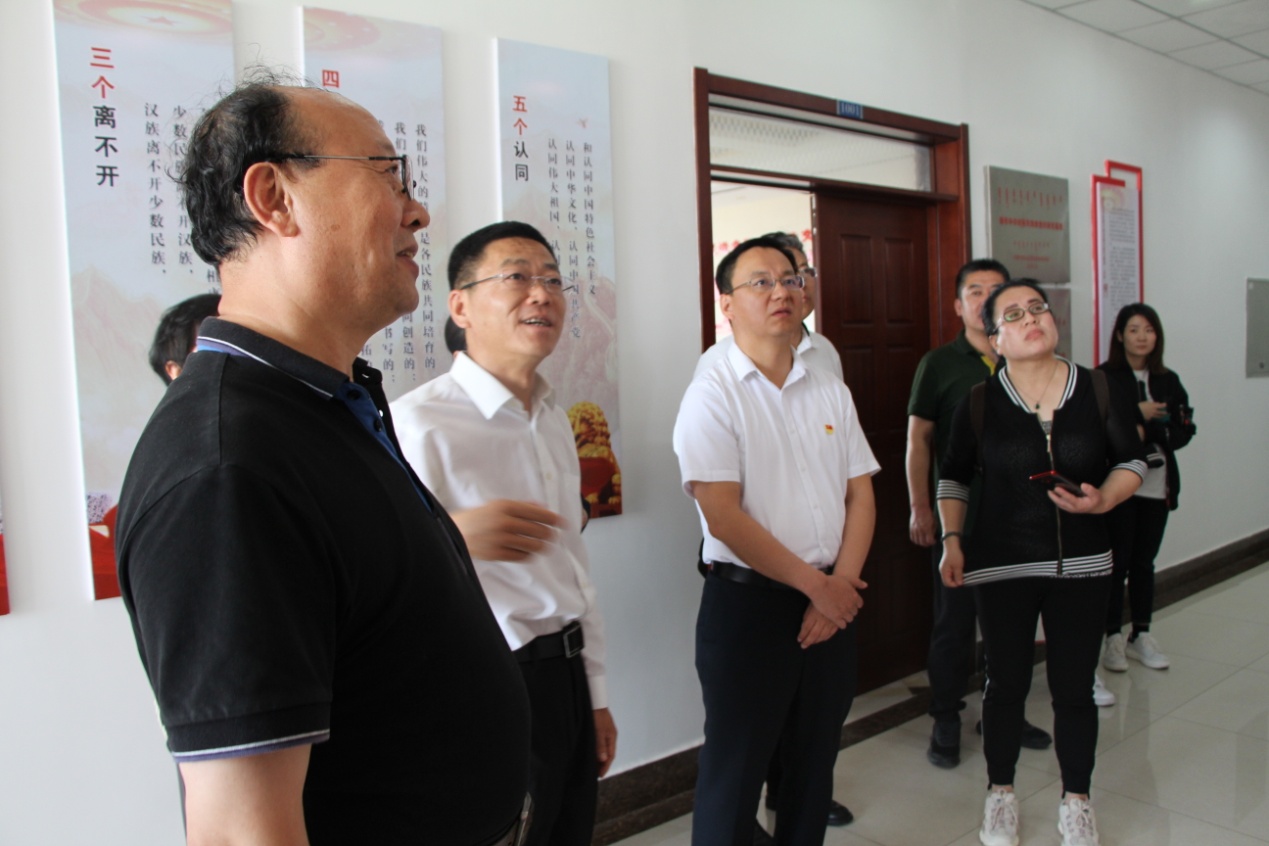 调研组一行先后实地调研了民族团结进步文化长廊、党史教育宣传展、思想政治理论课程实践教育基地、民族团结主题宣传展、铸牢中华民族共同体意识研究基地(中心)。