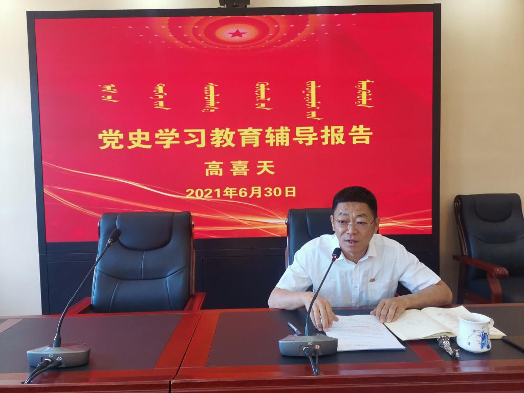 6月30日上午,党委委员、副校长高喜天在综合楼4楼会议室讲授了题为“奋进新时代,做出新奉献”的党史学习教育专题党课。党政办公室、工会、保卫处、后勤管理处、图书馆、博物馆、对外合作与交流中心、化学与环境学院、公共管理学院的40余名党员代表聆听了党课。