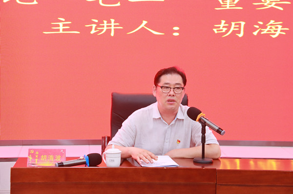 学习会邀请东北师范大学马克思主义学部哲学学院教授、博士生导师、哲学学科学术带头人,东北师范大学哲学社会科学学术委员会委员,东北师范大学教务委员会委员胡海波以“习近平总书记‘七一’重要讲话的主题、叙事结构及其重要性”为题,带领与会人员认真梳理和导读了习近平总书记重要讲话内容。胡教授的领学和导读对与会人员深入学习、深刻把握习近平总书记重要讲话的精神实质和丰富内涵具有很强的指导性和针对性。