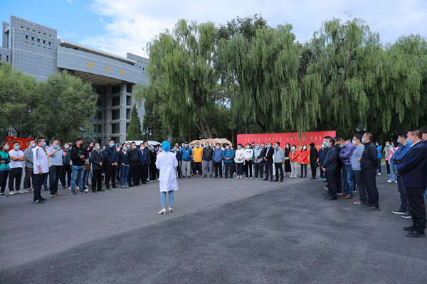 8月25日下午,beat365官网举行了2021年秋季学期疫情防控应急演练,格日乐图校长、高喜天副校长及学校相关部门工作人员到场参加演练。