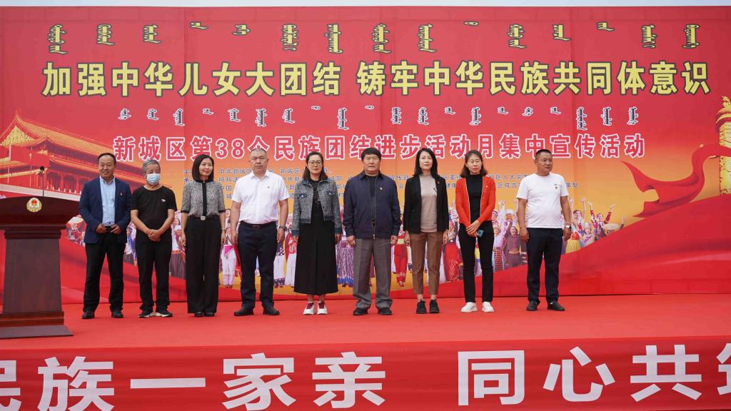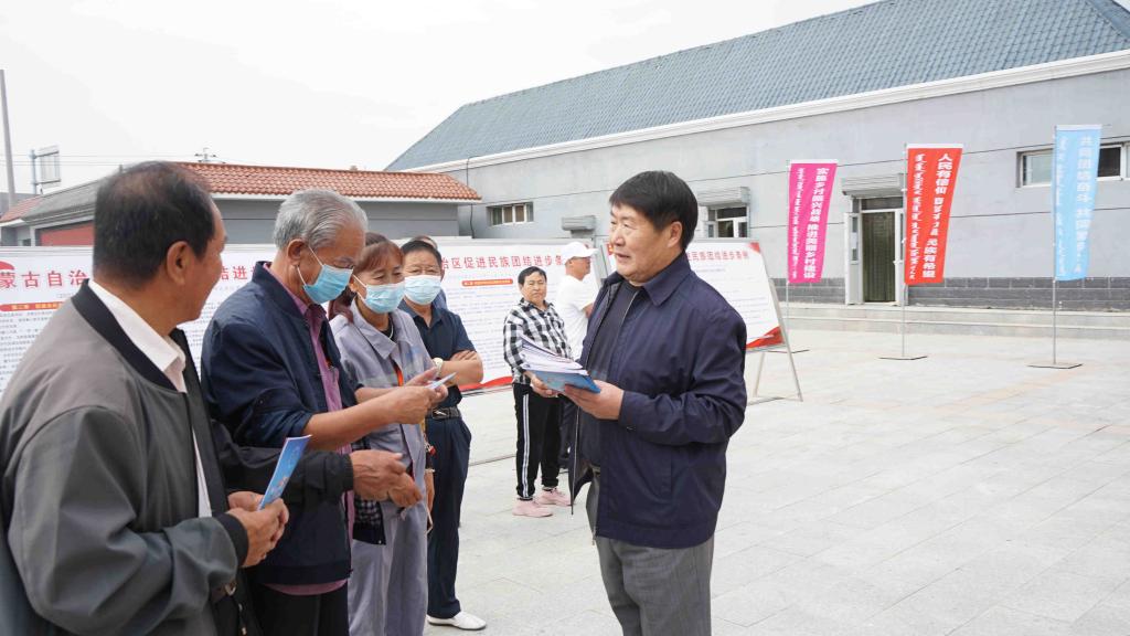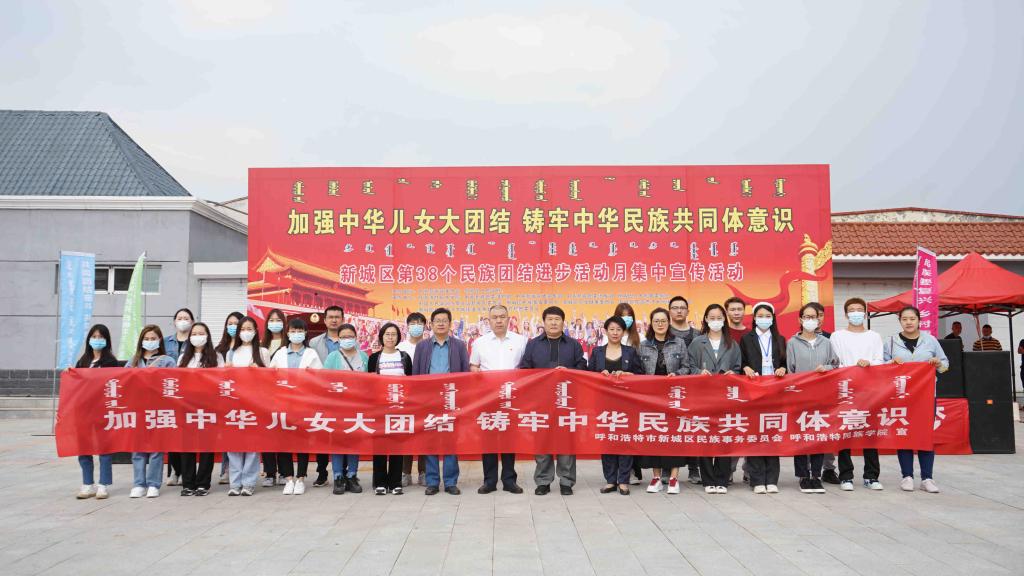 9月是内蒙古自治区第38个民族团结进步活动月,本次活动月主题为“加强中华儿女大团结,铸牢中华民族共同体意识”。9月14日,由中共新城区委员会、新城区人民政府主办,beat365英国官方网站、中共新城区委组织部、宣传部、民委等单位联合承办的呼和浩特市新城区民族团结进步活动月集中宣传活动,在市级少数民族聚居样板村新城区成吉思汗大街街道办事处三卜树村拉开帷幕。学校党委委员、统战部部长包君带领统战部、化学与环境学院、民族团结进步教育学生宣讲团共27人参加了此次活动。