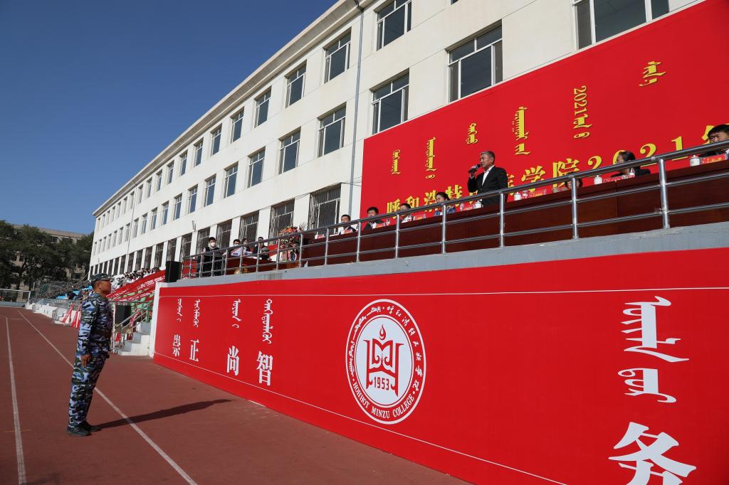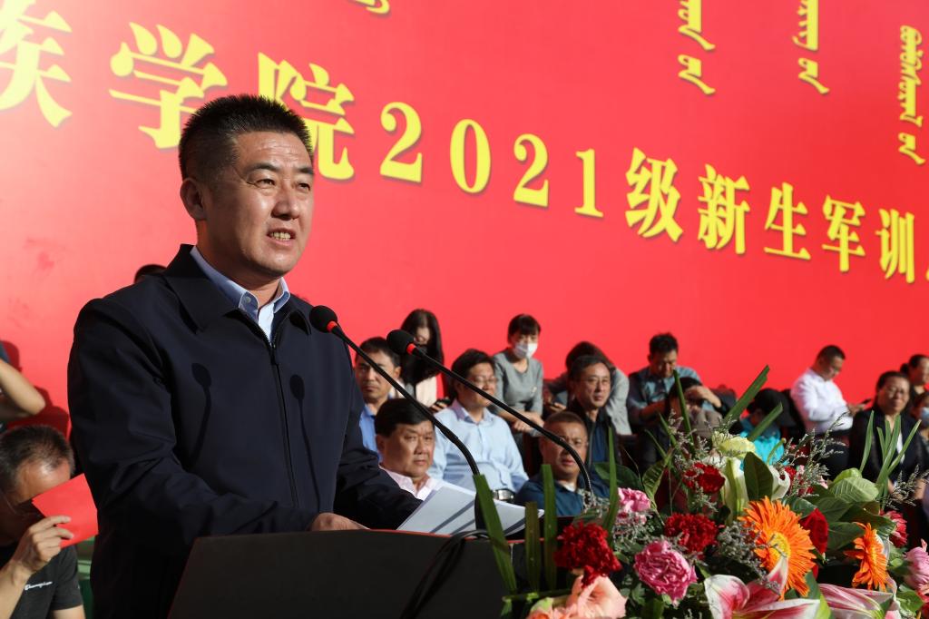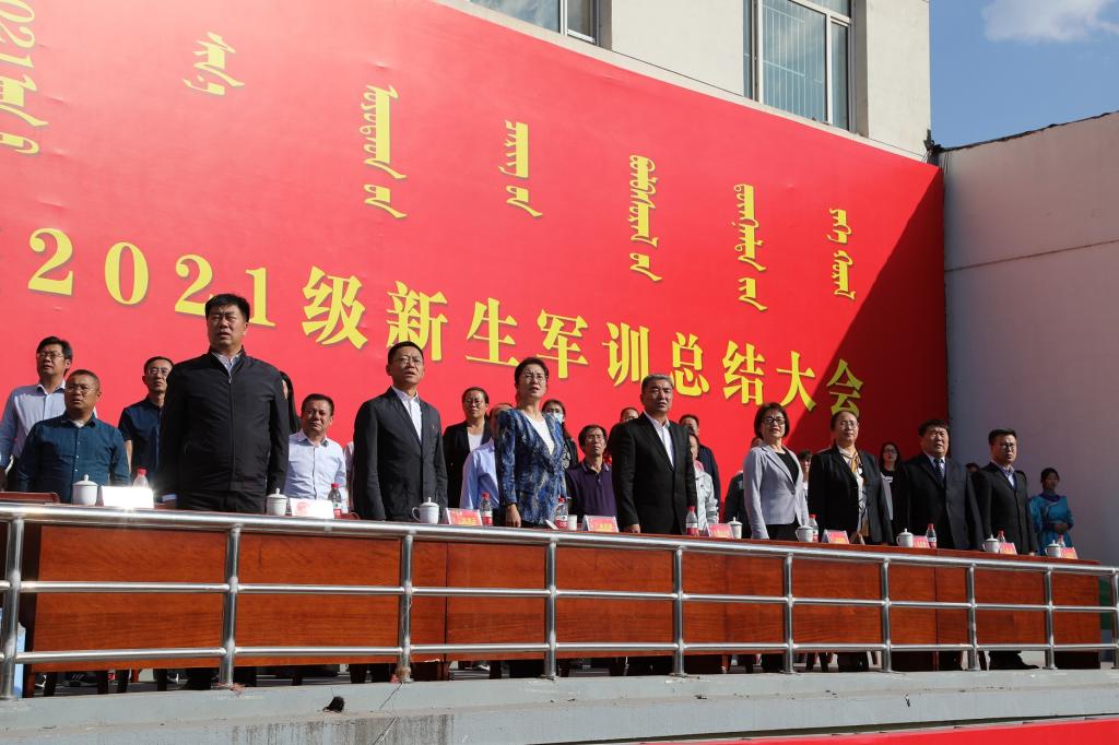 9月30日下午,beat365官网2021级学生军训总结大会在南院操场隆重举办。学校党委副书记、校长格日乐图,党委副书记胡春梅,副校长纳丽娜,党委委员、纪委书记、监察专员王冬梅,副校长高喜天出席大会,各职能部门负责人、二级学院党总支书记、院长、学工办主任、辅导员、新生班主任以及全体2021级学生共3000余人参加了大会。大会由党委委员、党政办公室主任朝格吉乐图主持。
