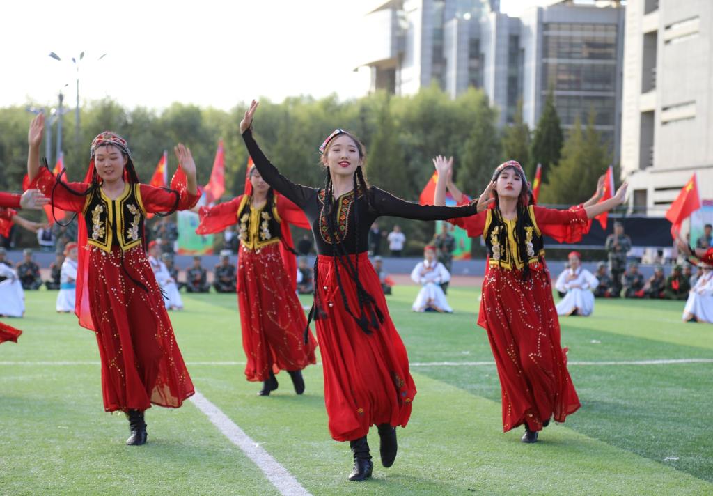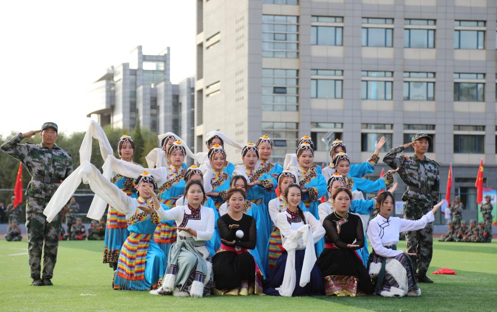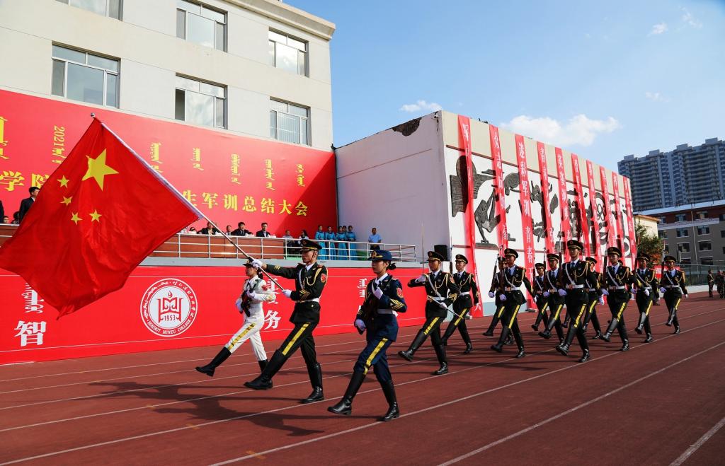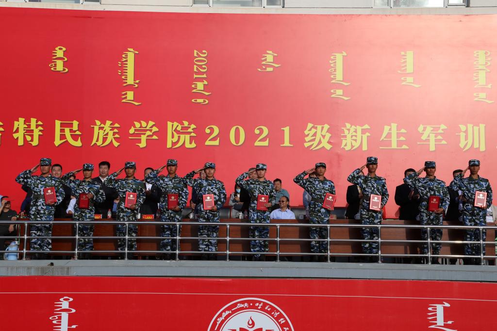 大会首先举行升国旗仪式,会场全体肃立,同唱国歌。格日乐图校长下达“开始”指令后,2021级学生军训总结大会正式开始。在学校国旗护卫队的带领下,各方队踏着整齐的步伐,喊着响亮的口号,以饱满昂扬的精神状态列队走过主席台前,展现出beat365官网青年学子朝气蓬勃、奋发向上的精神风貌。接着,由2021级新生组成的方队进行了“建党百年”字样展示、擒敌拳、女子匕首格斗术、应用战术、格斗对抗、情景剧、舞蹈等汇演。他们用优美的动作,精彩的展示,震撼全场,催人奋进,赢得现场观众的阵阵掌声。