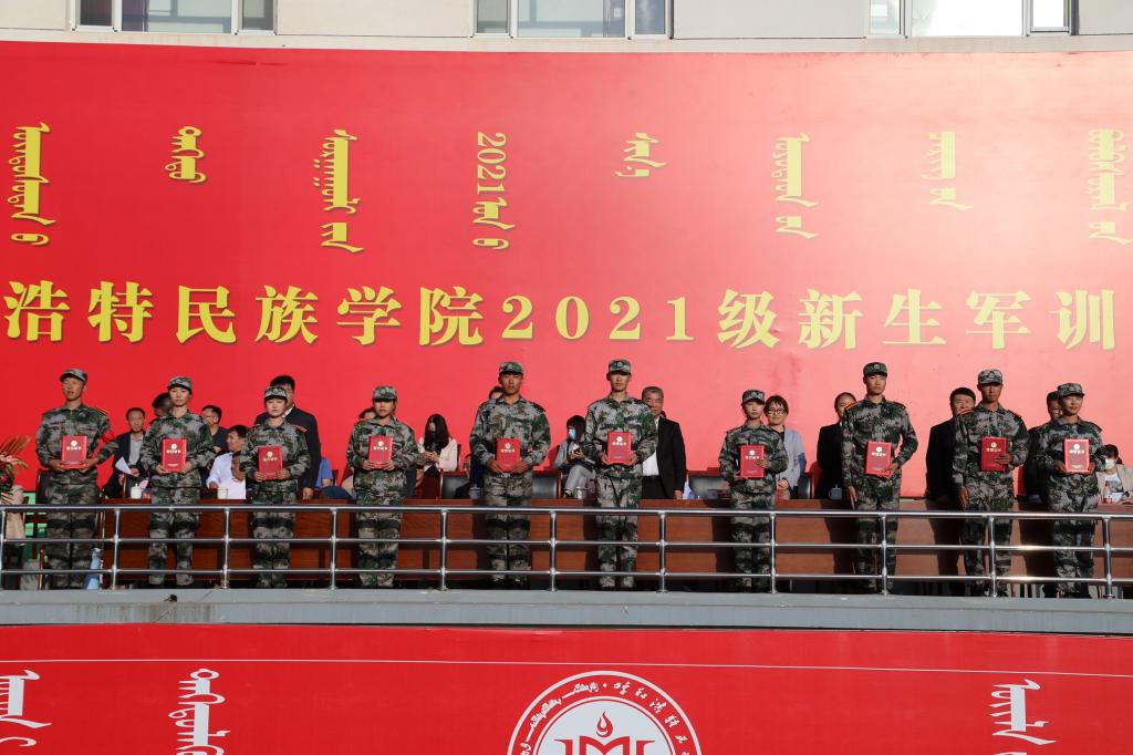 随后,胡春梅副书记宣读了《关于表彰2021级新生军训工作先进集体和个人的决定》,大会对会操、内务、板报、拔河、歌咏、军事训练先进集体和优秀教官、先进个人、优秀学生干部、优秀标兵进行了表彰。音乐学院沈冬怡同学代表2021级全体同学向学校汇报发言,她分享了军训感受并表态在今后的学习和生活上要发扬坚韧不拔、百折不挠的精神,不断提高自我综合素质,做一个积极向上、身心健康的新时代大学生;体育学院布音图同学代表教官和老生发言,他希望学弟、学妹们,要珍惜大学时光,做一些能够让自己充实的事情,不断提升自身修养,同时也要自信、自立、自强,用自信撑起一方天空,用自立经“赢”大学,在大学生活中绽放青春,扬帆起航。
