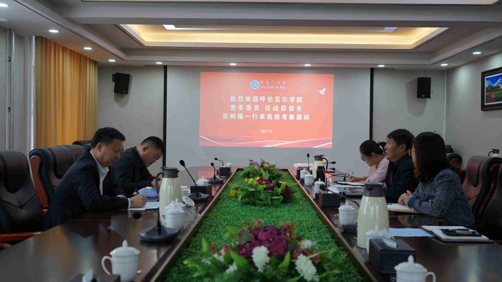 10月13日上午,呼伦贝尔学院党委委员、统战部部长张树福一行来校调研民族团结进步工作。学校党委副书记、校长格日乐图会见,党委委员、统战部部长包君陪同。