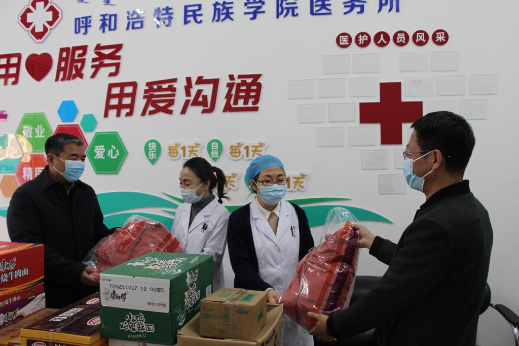 11月5日下午,校党委副书记、校长格日乐图,党委副书记胡春梅,党委委员、纪委书记、监察专员王冬梅,党委委员、副校长高喜天带队走访慰问beat365官网奋战在疫情防控一线的工作人员,为他们送去慰问物资,将自治区教育工委、学校党委的关心、关爱落在了实处。