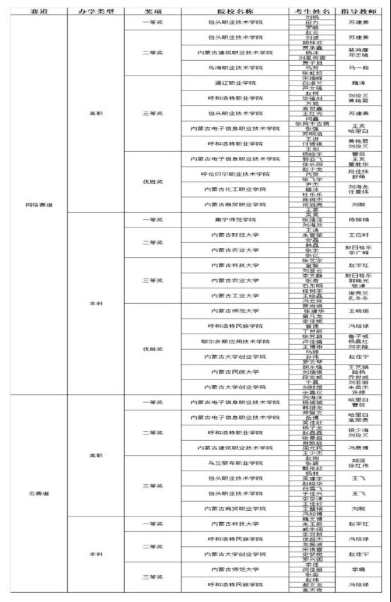华为中国大学生ICT大赛2021实践赛内蒙古自治区省赛决赛获奖名单