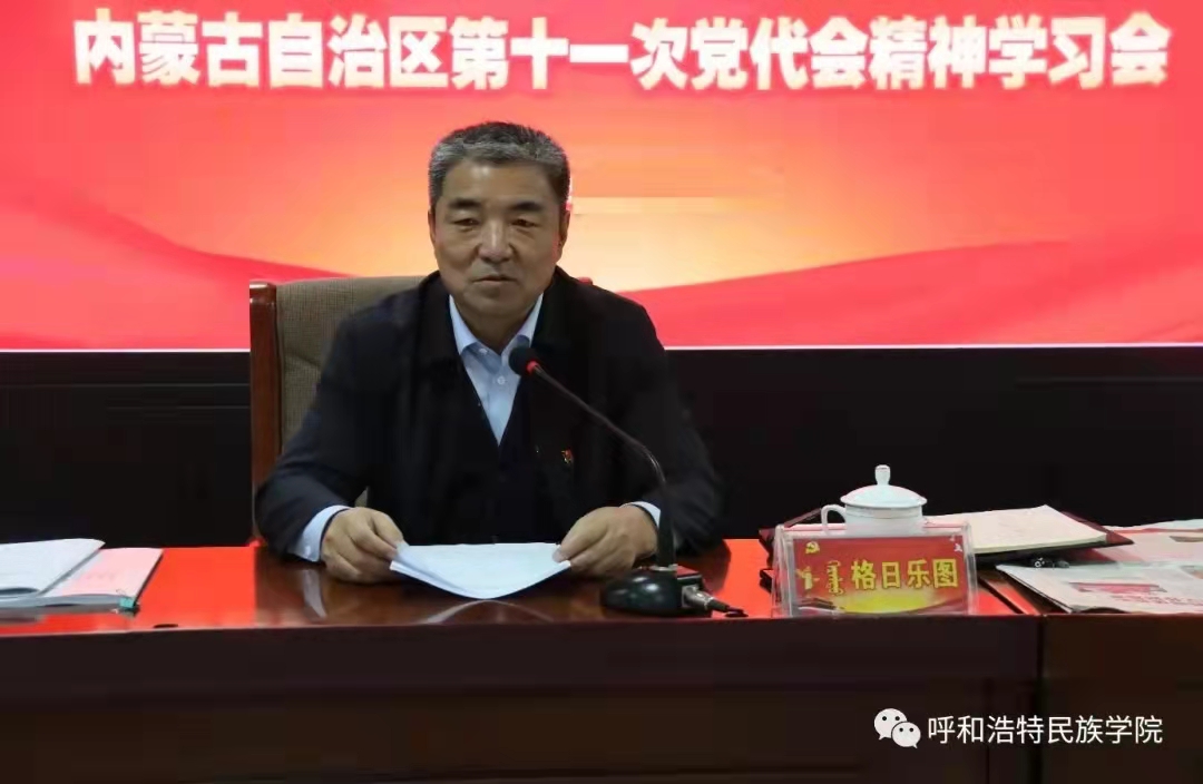 格日乐图校长指出,自治区第十一次党代会是在我们党成立一百年之际、我国进入全面建设社会主义现代化国家新征程的重要时刻召开的一次十分重要的大会。石泰峰书记的报告,全面总结内蒙古自治区过去五年的工作和成就,深刻阐述全面建设社会主义现代化国家新征程上内蒙古的重大责任和光荣使命,明确提出了今后五年工作目标、主要任务和重大举措,具有很强的政治性、理论性、实践性,是一个高举旗帜、团结奋进、求真务实、开拓创新、鼓舞人心,催人奋进的报告。