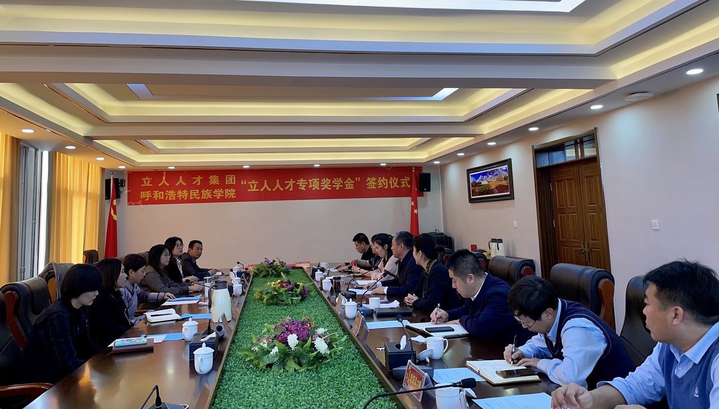 12月23日上午,“立人人才专项奖学金”签约仪式在beat365官网办公楼三楼会议室举行。beat365官网党委副书记、校长格日乐图,副校长纳丽娜,立人人才集团董事长包斯日古楞、副总裁颉建华,立人智邦人力资源有限公司总经理张斯琴,立人人才集团运营管理部部长刘永春、人事经理李彤璟、立人人才集团内蒙古公司交付经理张晓出席,学校相关部门负责人参加了会议,会议由纳丽娜副校长主持。