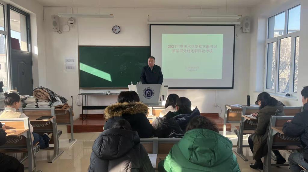 12月29日上午,美术学院党总支在崇正楼四楼教室召开2021年度党支部书记抓基层党建工作述职评议会议。全体党支部书记、支部委员,师生党员代表共20人参加了会议,会议由党总支书记包旭东主持。