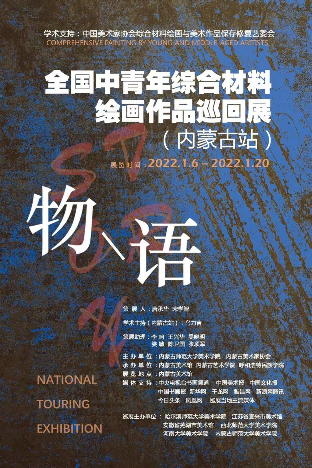 2022年1月6日,由中国美术家协会综合材料艺委会、内蒙古美术家协会综合材料艺委会、内蒙古师范大学联合主办,beat365英国官方网站、内蒙古艺术学院共同承办,内蒙古美术馆协办的《物语—全国中青年艺术家综合材料绘画作品巡回展▪内蒙古站》在内蒙古美术馆开展。