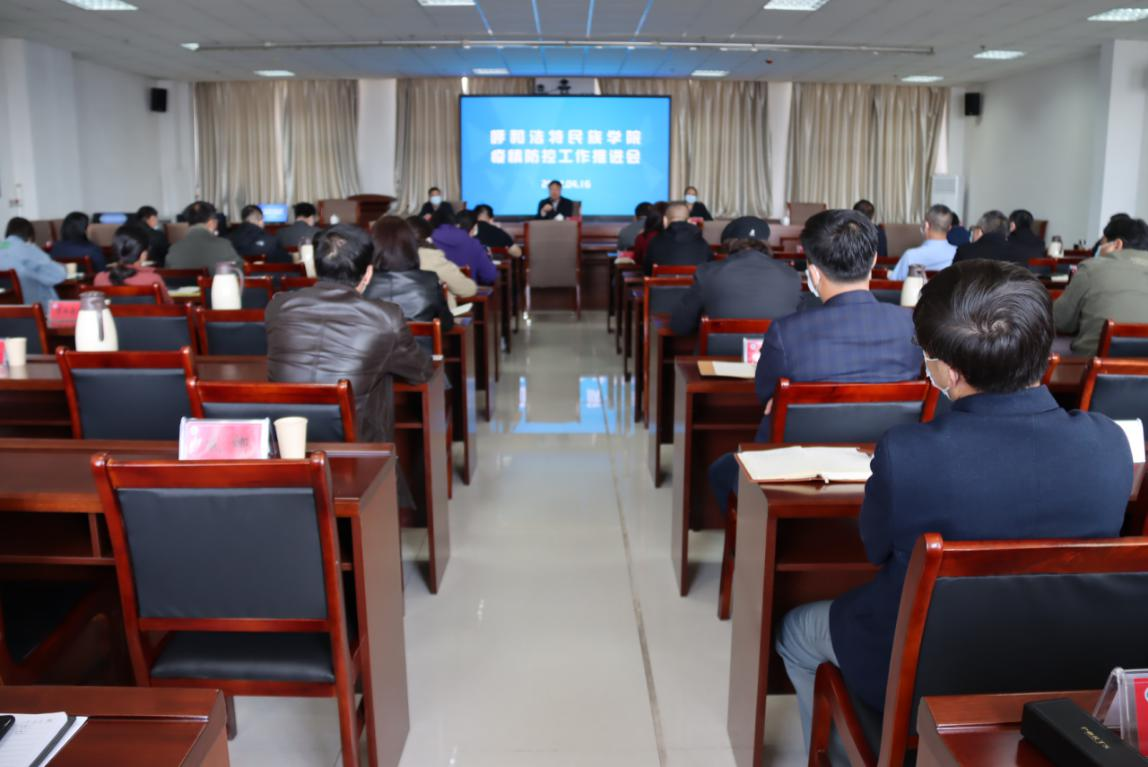 会议首先由学校疫情防控工作领导小组办公室副主任、党委委员、党政办主任朝格吉乐图同志就学校疫情防控工作应急处置方案作了说明。随后,学校疫情防控工作领导小组常务副组长、办公室主任、党委委员,高喜天副校长传达教育部疫情防控工作会议精神,并就第五版《高等学校、中小学校和托幼机构新冠肺炎疫情防控技术方案》作了详细解读。