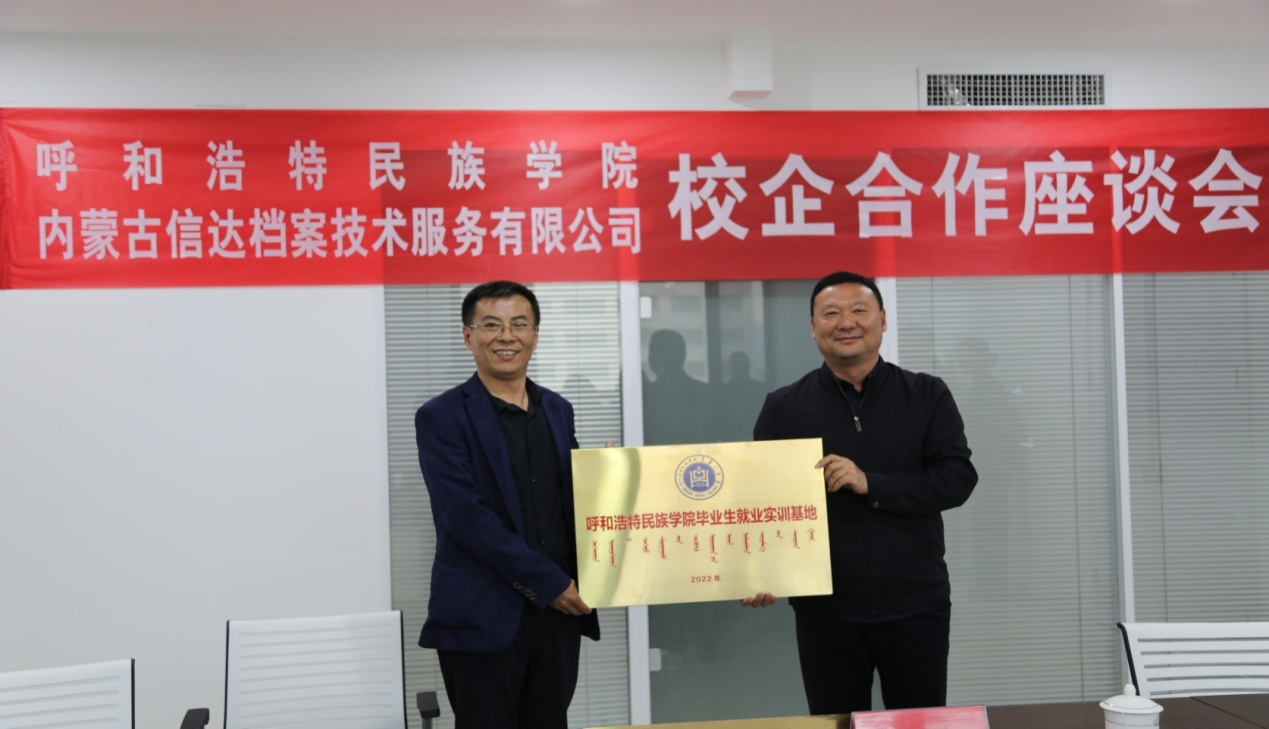 会后,纳丽娜副校长与尹俊峰总经理分别代表学校与公司签订了就业实训基地合作协议,就业指导处处长包仓向公司授予“毕业生就业实训基地”牌匾。
