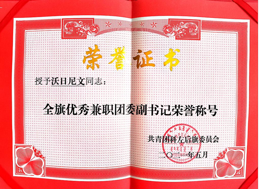 作为一名学生党员,沃日尼文同学积极宣传贯彻党的民族理论政策,积极宣传推广国家通用语言文字,在内蒙古日报刊登采访文章《国家通用语言文字助我实现青春梦》,并在学习强国、微信公众号等全平台报道;以“学好国家通用语言文字青年说”为主题接受内蒙古商报、蒙视频等相关媒体采访。