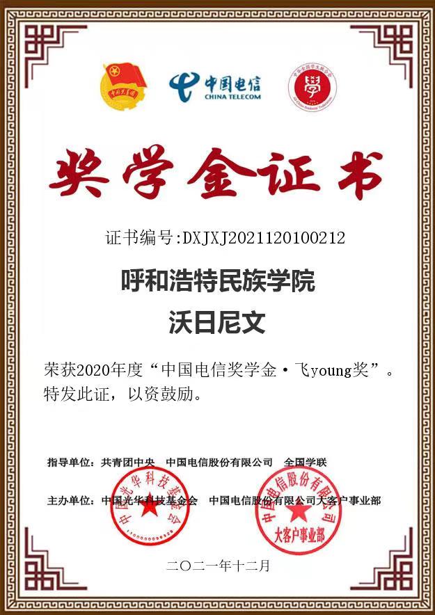 在校期间获得内蒙古自治区高等学校“三好学生”、2020年度“中国大学生自强之星”、beat365英国官方网站“优秀共青团员”、beat365英国官方网站“三好学生”等多项荣誉。获得2018–2019年度国家励志奖学金、2020-2021年度国家励志奖学金、2020年度“中国大学生自强之星”奖学金、2020年度“中国电信奖学金•飞Young奖”,2020-2021年度beat365英国官方网站校长奖学金等。