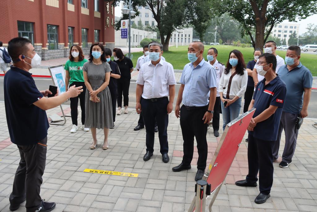 8月21日,新城区副区长海明一行10人到校检查指导秋季学校疫情防控工作。校党委书记格日乐图、副校长纳丽娜、刘瑞鸿及疫情防控工作领导小组办公室、各专项工作组负责人陪同检查指导组。