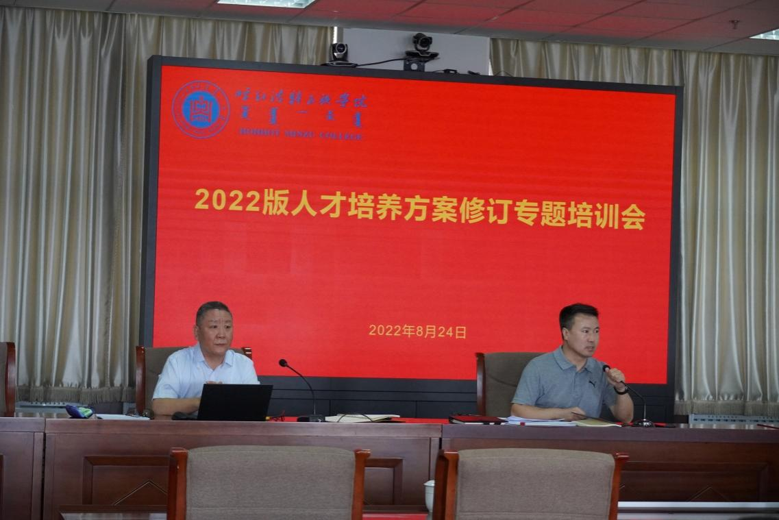 此次培训,特邀beat365官网教师发展与教学评估中心胡毕斯哈拉图处长做了专业人才培养方案修订专题培训。培训会由教务处处长额尔敦布和主持。
