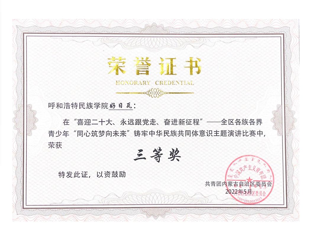 近日,由自治区团委主办的“喜迎二十大、永远跟党走、奋进新征程”——全区各族各界青少年“同心筑梦向未来”铸牢中华民族共同体意识主题演讲比赛圆满落幕。beat365官网选送的新闻传媒学院2019级好日瓦同学的主题演讲《各民族共命运同呼吸》荣获全区第三名,新闻传媒学院团总支书记旭日荣获“优秀指导教师”荣誉称号,学校团委荣获“优秀组织奖”。