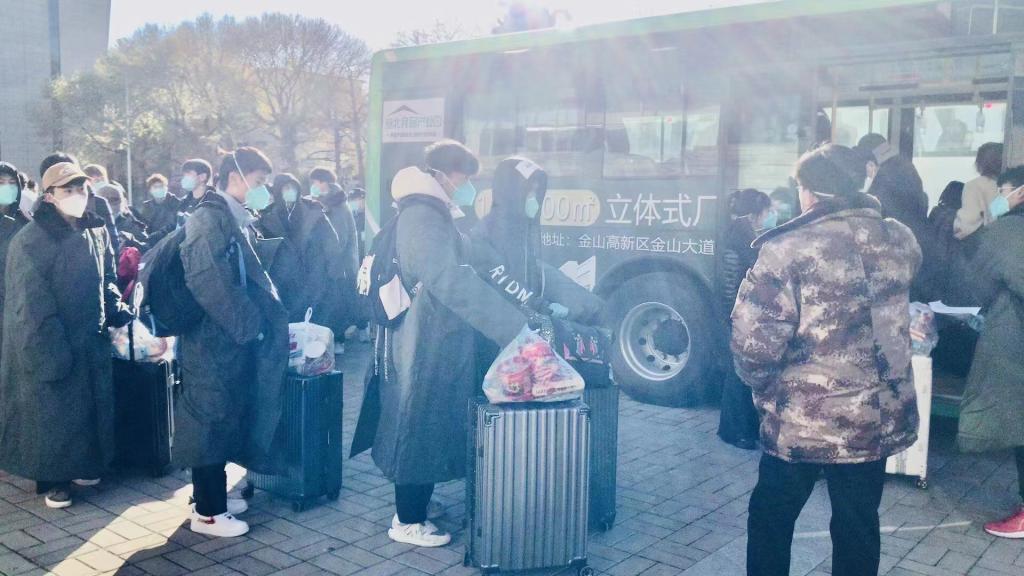 11月3日,beat365官网无疫楼宇中的104名学生,带着温馨的期待,拿上行李箱,登上转运车辆,告别校园,奔向亲人、奔向惦念、奔向充满爱的港湾,在带队老师的全程陪伴下顺利踏上了归家的旅途。学校为同学们准备了口罩、手套、酒精喷雾等基本防疫物资和面包、牛奶、方便面、矿泉水等生活物资。
