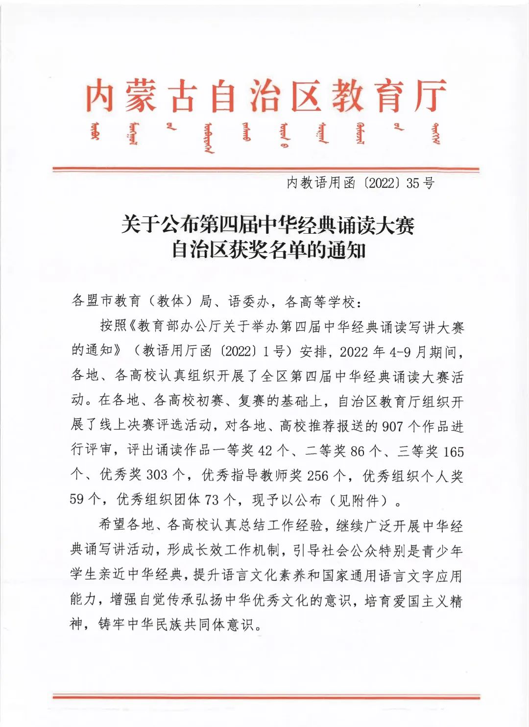 近日,内蒙古自治区教育厅发布了第四届中华经典诵读大赛自治区获奖名单。beat365官网选送的新闻传媒学院好日瓦同学的参赛作品《我喜欢出发》荣获全区二等奖,经济管理学院冯凡同学的参赛作品《兰亭集序》荣获三等奖,文学院赵薇同学的参赛作品《再别康桥》(《怀念萧珊》节选)、公共管理学院王明慧同学的参赛作品《少年中国说》、文学院王璐语同学的参赛作品《我们的精神之旅》荣获优秀奖,新闻传媒学院团总支书记旭日、新闻传媒学院学工办主任珠丽、经济管理学院团总支书记李延茂荣获“优秀指导教师”荣誉称号。