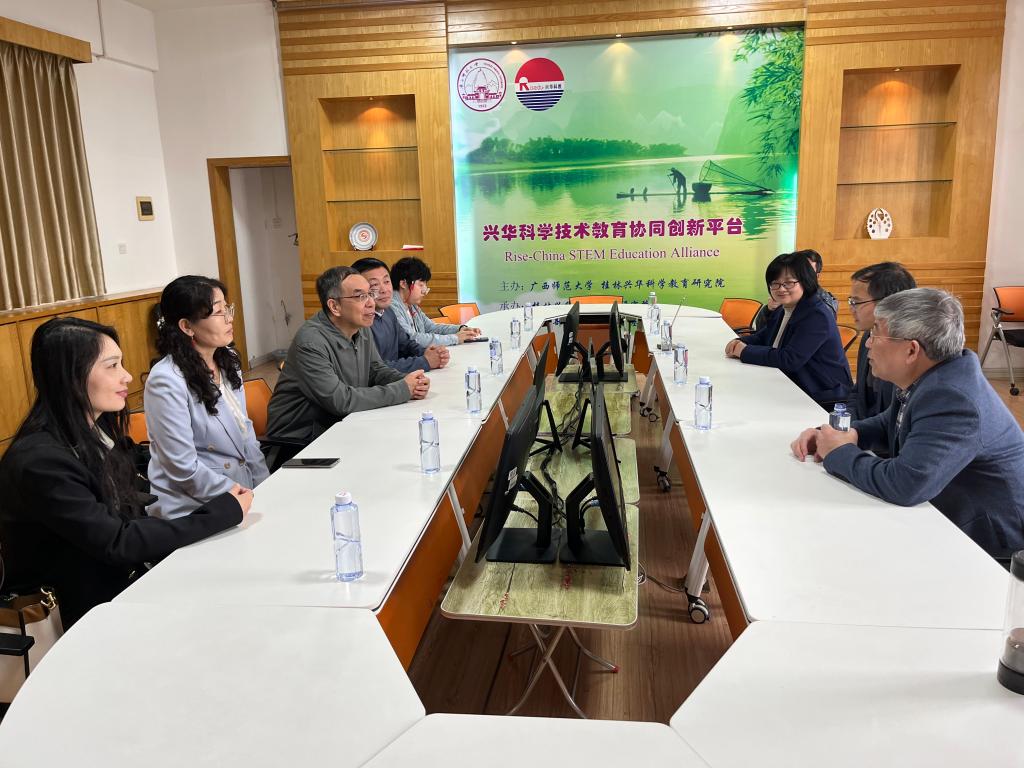 随后,考察组到广西师范大学科学教育研究所进行了考察交流,所长罗星凯教授从广西师大科学教育本科专业建设历程、兴华创新实践师资班的组织、科学教育专业学生就业、国家加强科学教育建设的积极意义以及该研究所的科学教育教学研究等方面进行了介绍,并针对科学教育专业建设给予诸多切实可行的宝贵建议。
