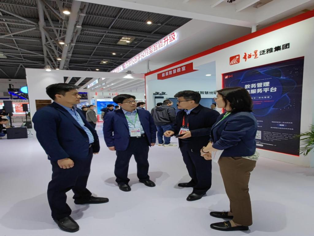 在博览会期间,韩伟新一行参加了高等教育创新发展暨第三届大学校长论坛:高水平地方大学与高质量区域发展大会;第三届区域高等教育改革发展大会;2023年高校产教融合研讨会和高校教育赋能乡村振兴发展大会等相关论坛,并实地参观走访了部分参会企业展位,并与有关人员就通识教育解决方案、教务管理服务平台、智慧教学系统等方面进行深入交流。
