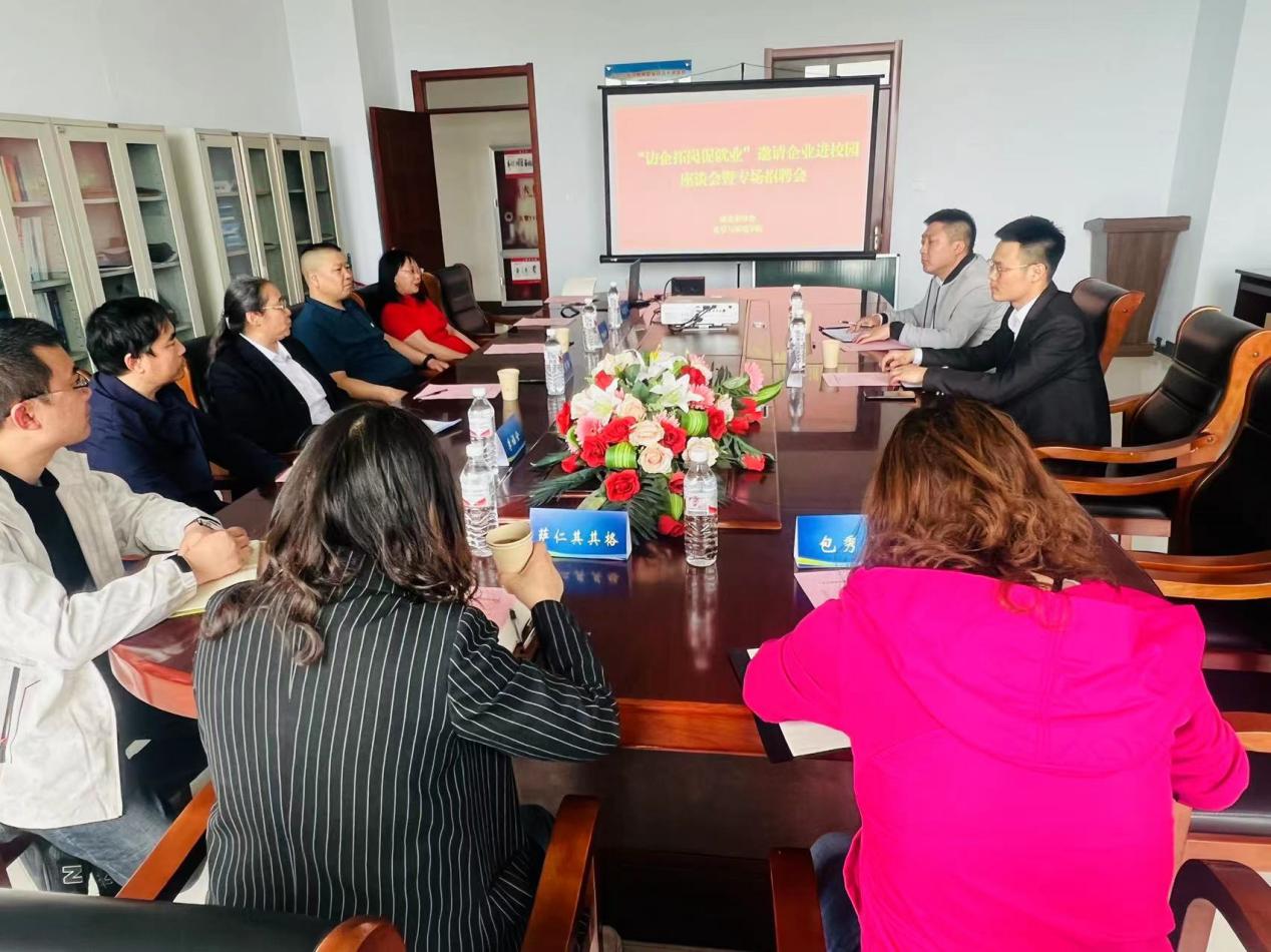 座谈会上,学校党委委员、纪委书记、监察专员王冬梅对企业进校选聘毕业生表示热烈欢迎,并向企业详细介绍了学校专业建设转型升级、人才培养、学生就业等情况,希望双方进一步建立工作交流机制,加强对人才培养、顶岗实习等方面合作,强化校企双方在人才需求与人才输送上的战略合作关系,实现资源共享,达到校企共赢的发展目标。鄂尔多斯市隆基光伏科技有限公司人力资源部负责人就隆基绿能集团的企业概况、发展现状、业务领域及未来发展方向、人才培养计划、梯队建设等方面进行了全面深入的介绍。