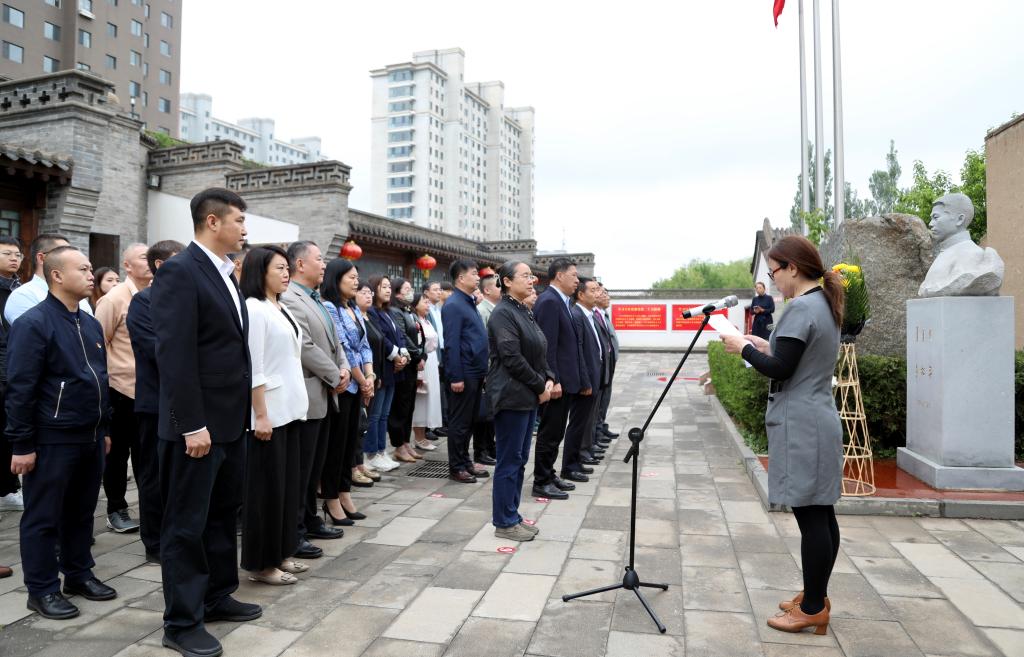 为进一步凝心铸魂筑牢根本,弘扬革命精神,缅怀革命先烈,汲取奋进力量,锤炼党性修养,5月30日上午,beat365官网组织机关党委全体党员开展“感党恩 听党话 跟党走”主题党日活动,走进多松年烈士纪念馆,追寻先烈足迹,共话信仰初心。自治区党委主题教育第十一巡回指导组组长、自治区政府参事霍武,主题教育第十一巡回指导组成员赞歌,多松年烈士之孙——云国华受邀出席。校党委书记刘九万,党委副书记胡春梅,纪委书记、监察专员王冬梅,党委委员、副校长高喜天等校领导出席活动,机关党委党员干部、思政课教师代表、学生代表共120余人参加了主题党日活动。