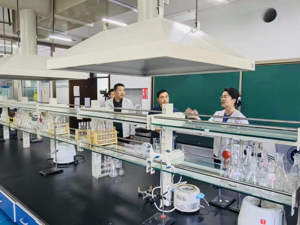 纳丽娜一行先后深入微生物实验室、环境监测实验室、危化品储物间等场所进行实地查看,重点检查实验室安全隐患与环境卫生整治情况。在调研现场,纳丽娜详细询问了实验室的布局、人员配备、仪器设备使用效率等具体事宜。重点检查了实验室用电规范安全、消防安全通道、实验室安全制度、安全检查记录等情况。