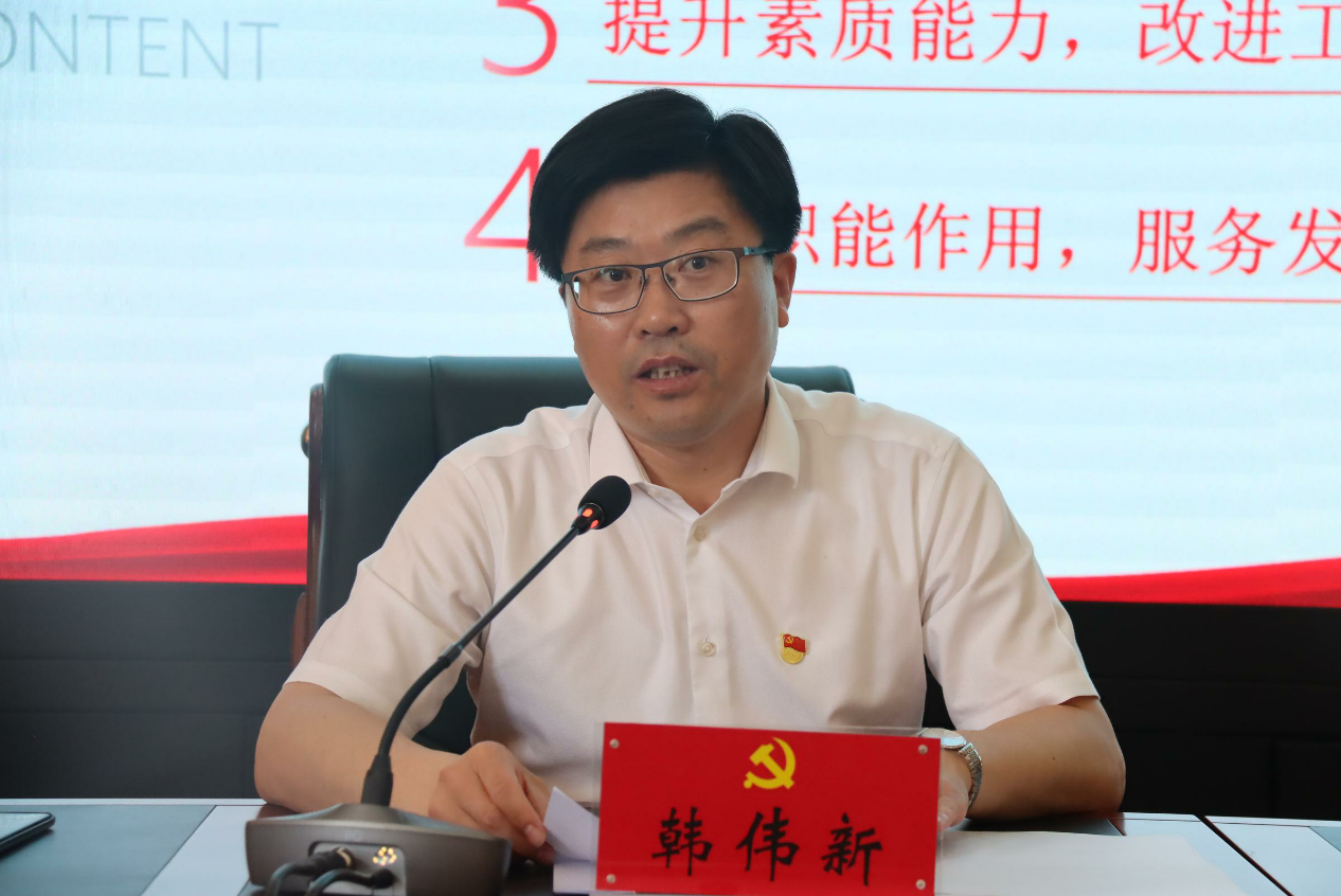 韩伟新指出,扎实抓好主题教育,就要坚持学思用贯通、知信行统一,自觉用习近平新时代中国特色社会主义思想武装头脑、指导实践,通过大兴调查研究之风找准当前学校和所在单位建设中存在的短板弱项,理清问题,抓住关键环节,探寻解决措施,瞄准问题干,有的放矢、点面结合,创新方法、精准施策,不断增强工作科学性、创造性、针对性和可操作性,要用数字说话,用成果检验成效。