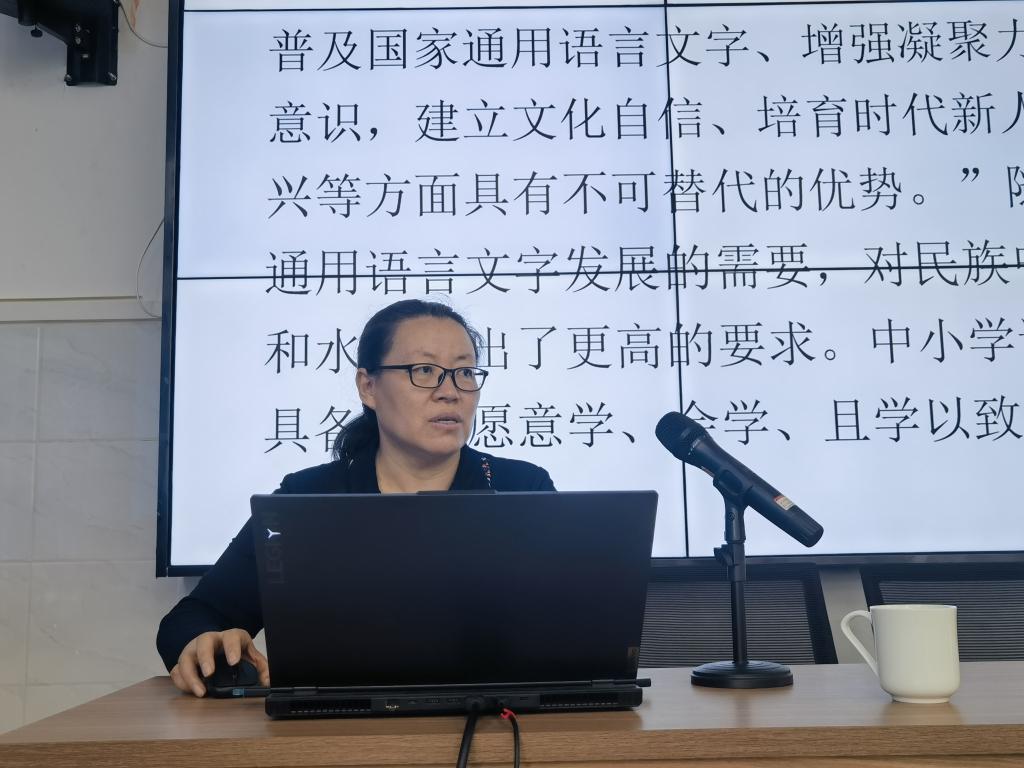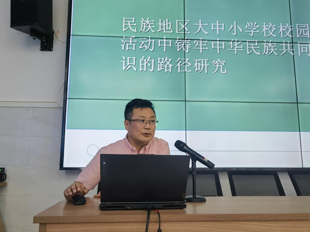 座谈会上,胡春梅教授作了题为《教育教学研究方法与选题》的专题讲座,就教育研究的原理方法、课题类型、课题来源、选题过程与方法、课题论证等内容作了深入阐释,并鼓励大家积极开展教育教学项目研究,探索新的教学模式和教育理念,推动中小学教育实现更高质量的发展。基础教育学院院长崔凤珍教授、外国语学院副院长红鸽副教授、马克思主义学院张秀芬副教授,基于中小课程教学改革的实际需要,分别结合语文、英语、道德与法治等课程教学作了题为《民族中小学语文阅读教学研究》《同构思政课堂共育树人篇章——关于大中小思政课一体化育人实施路径的思考》《中小学英语课程改革与教师专业发展》的专题报告。发展规划与学科建设处副处长哈达副教授从民族地区学校校园文化活动的丰富内涵入手作了题为《民族地区大中小学校校园文化活动中铸牢中华民族共同体意识的路径研究》,并提出了为民族地区学校如何将铸牢中华民族共同体意识与校园文化活动高质量融合的相关建议。