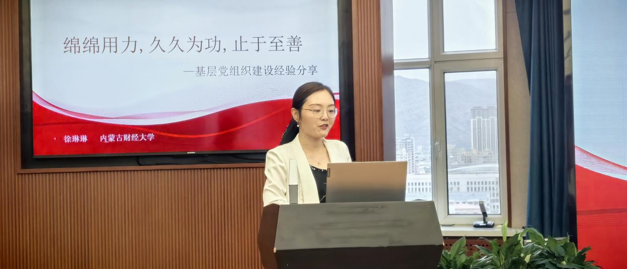 徐琳琳以《绵绵用力、久久为功、止于至善——基层党组织经验分享》为主题,从学、思、悟、践四个方面详细分享了在培育创建样板党支部过程中的有效举措和特色做法进行详细的工作经验分享。徐琳琳表示培育创建“全国党建工作样板支部”,一要坚持“五学”,即:跟有经验的老师学、跟新媒体学、跟专家学、跟论文学、跟指标学;二要思考“十问”,即:有哪些条件?现状如何?怎么灵活掌握?怎么创新?党建与业务怎么融合?怎么凝聚党支部的向心力?怎么填写材料?别人是怎么做的?怎么发挥辐射作用?怎么凸显示范引领作用?三要申报工作要抓住“四点”,即:提前准备、梳理成果、凝练特色、精益求精。