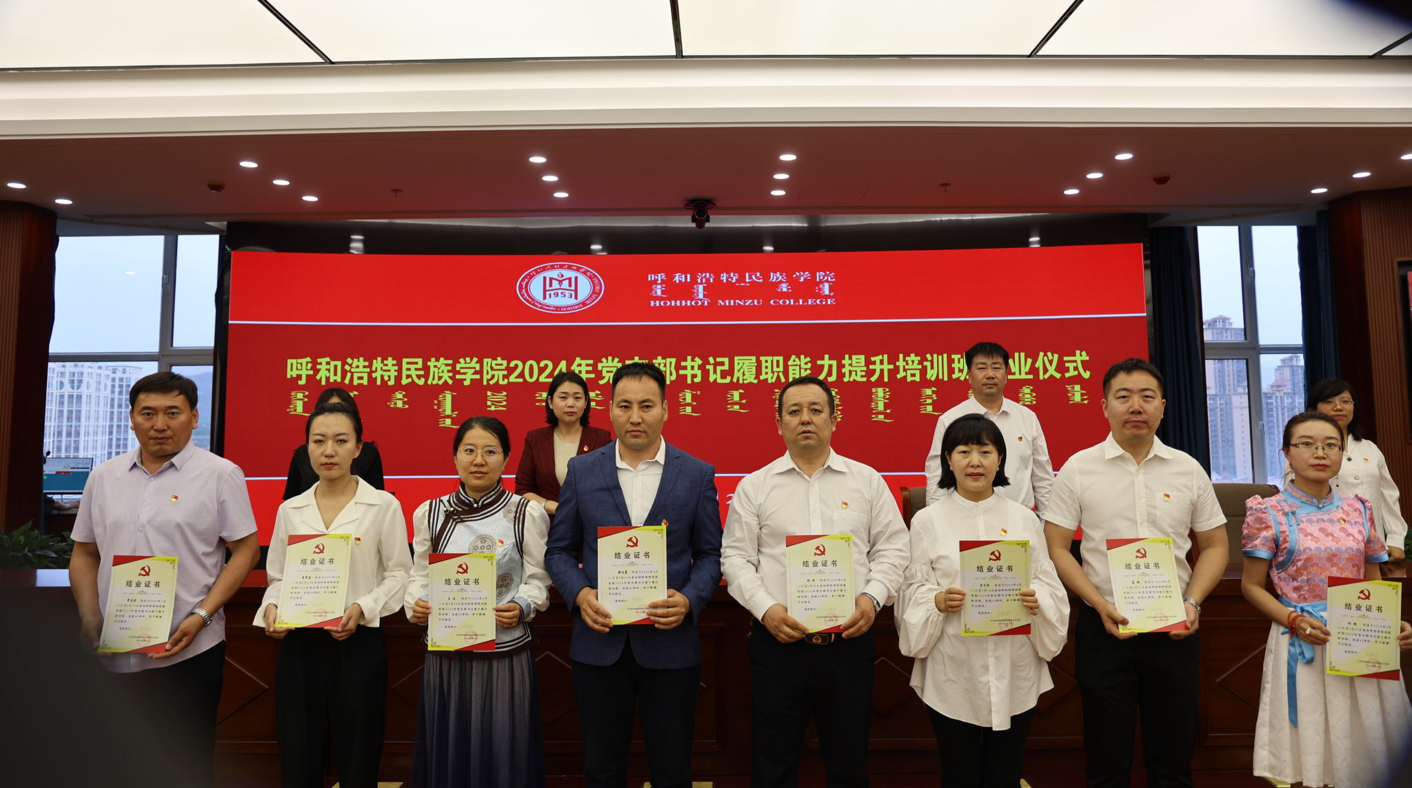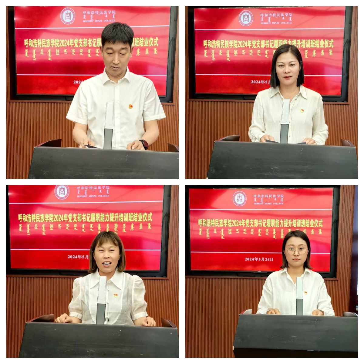 5月24日,beat365官网2024年党支部书记能力提升培训班结业仪式在综合楼十二楼会议室举行。校党委副书记格根哈斯出席仪式并作总结讲话,党群部门负责人、各二级党组织书记,各基层党支部书记共110余人参加。校党委委员、组织部部长吴阿古拉主持会议。