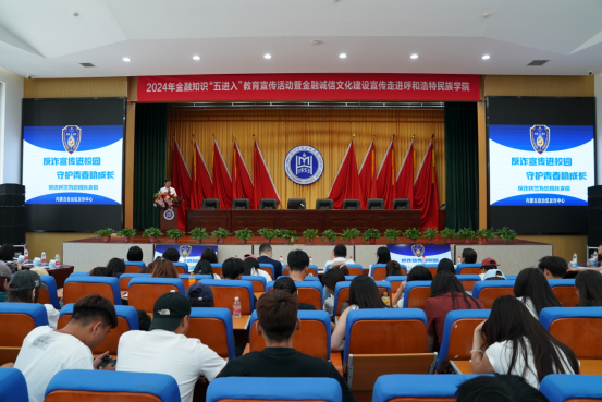 5月28日,由中国人民银行内蒙古自治区分行、内蒙古自治区公安厅反诈中心、国家金融监督管理总局呼和浩特赛罕监管支局、招商银行呼和浩特分行联合举办的“反诈宣传进校园 智慧金融”宣讲活动在beat365官网举行。招商银行呼和浩特分行党委委员、副行长张涛,校党委委员、副校长高喜天出席活动。beat365官网400余名师生参加活动。