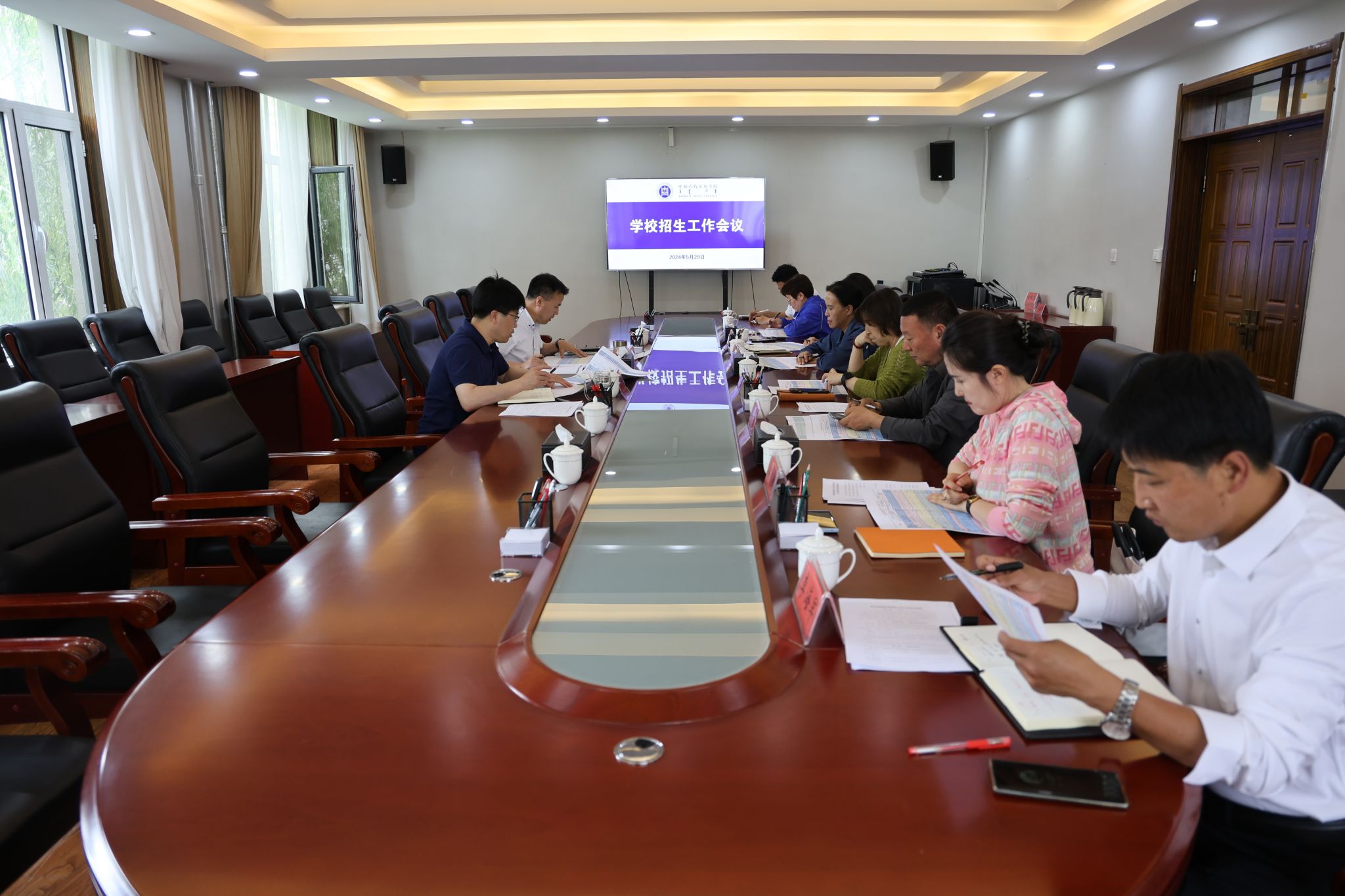5月29日,学校在办公楼二楼会议室召开2024年本科招生计划编制工作会议,进一步科学研判、分析形势,明确目标任务和工作要求,部署落实学校本科招生计划编制工作会议暨招生委员会工作会议。党委副书记、校长韩伟新,党委委员、副校长额尔敦布和出席会议并讲话。招生委员会全体成员,相关职能部门负责人、各学院院长参加会议。