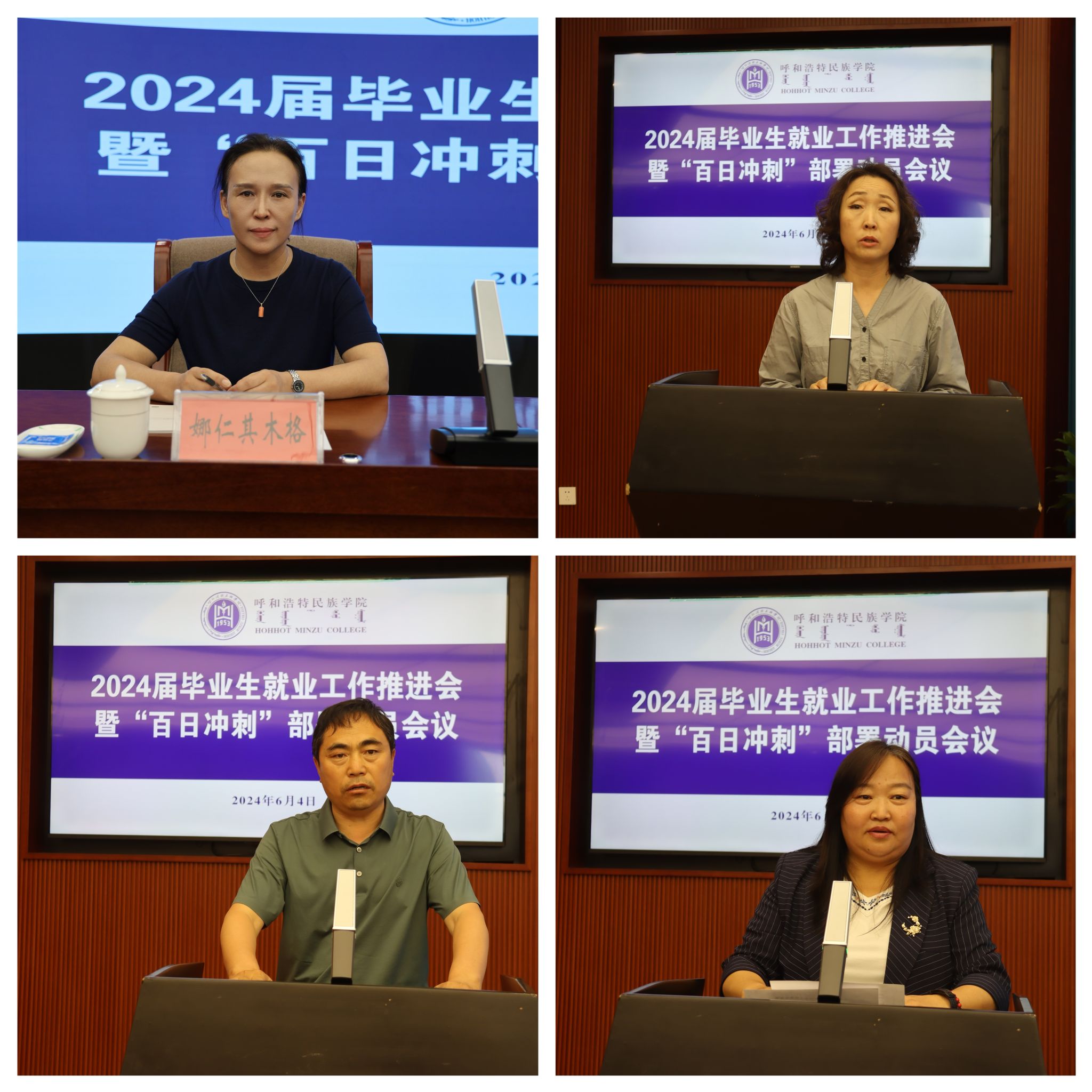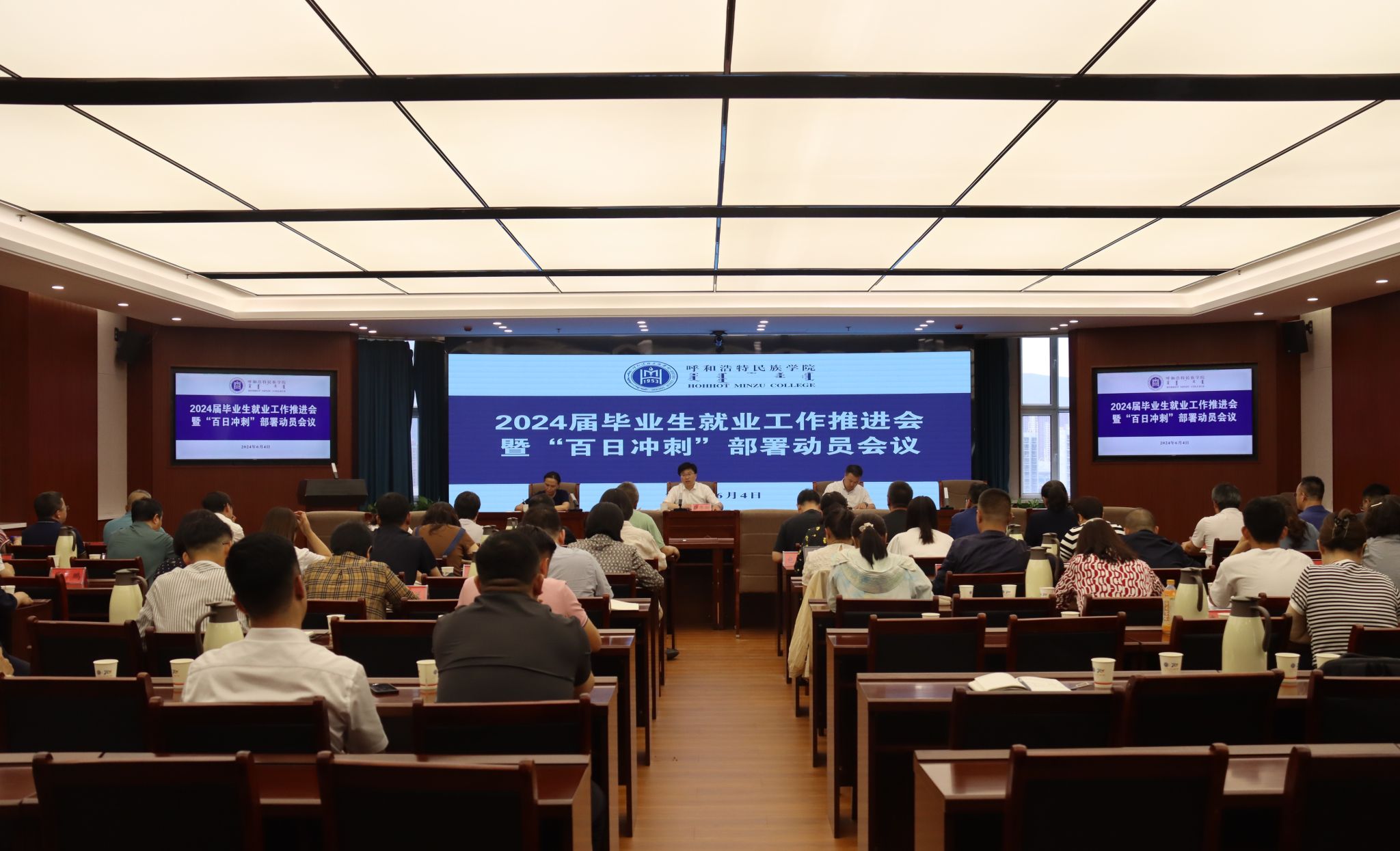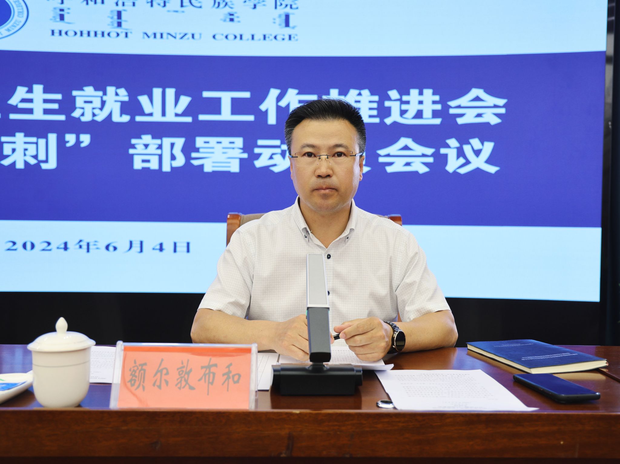 6月4日,学校2024届毕业生就业工作推进会暨“百日冲刺”行动部署会在综合楼12楼会议室召开,校党委副书记、校长韩伟新出席会议并讲话。各学院领导班子成员、毕业班班主任、辅导员和招生就业处全体人员参会。会议由党委委员、副校长额尔敦布和主持。