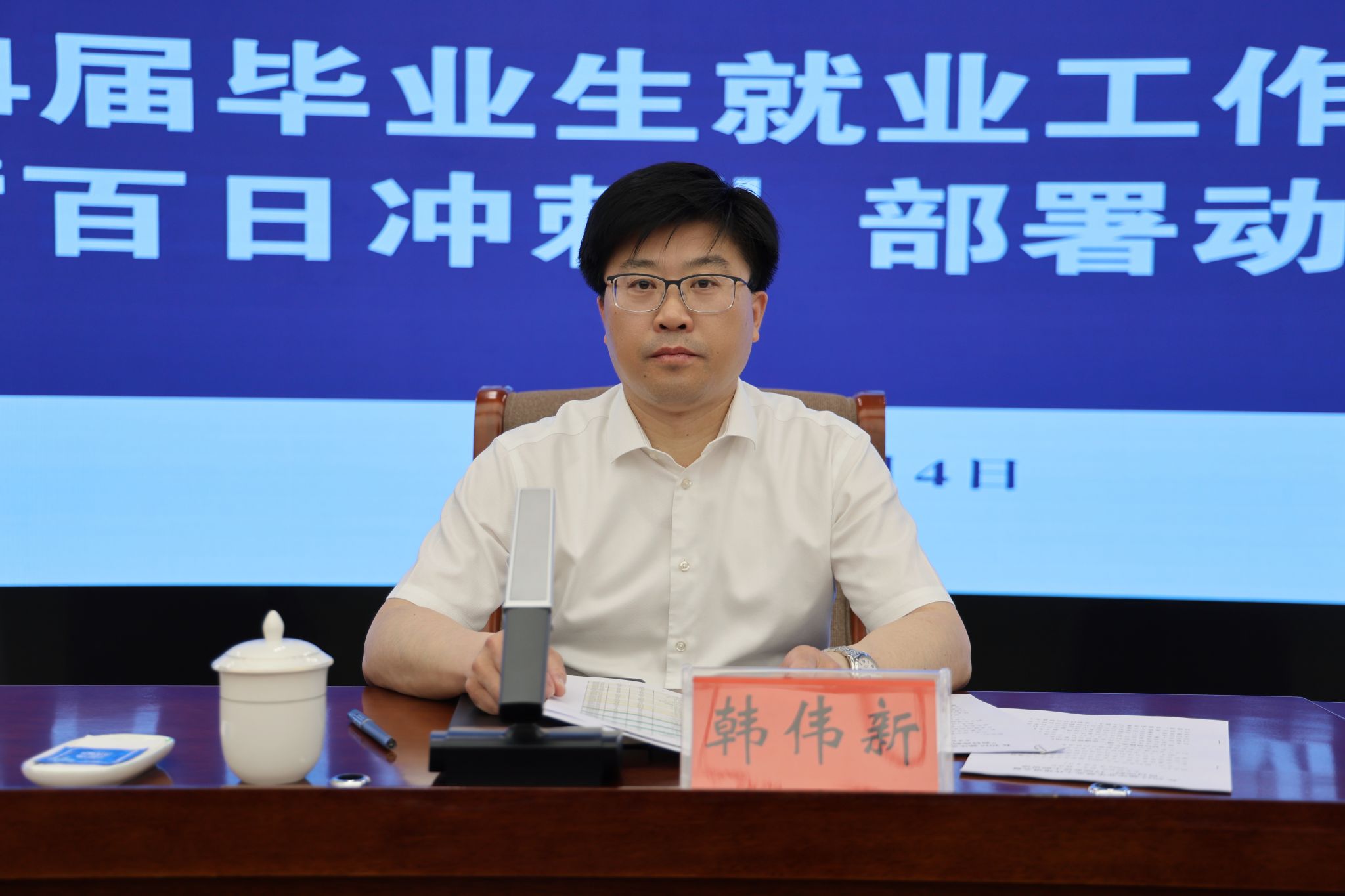 韩伟新就进一步做好毕业生就业工作提出三点意见:一要站位再提高,进一步增强责任担当。树牢以学生为中心的理念,深入贯彻落实习近平总书记关于就业是最大民生的重要指示精神,抓好毕业生离校前的关键期、冲刺期,精心谋划、全员推进、全力确保2024届毕业生尽早就业。二要工作再提速,进一步聚焦重点难点。切实加强毕业生的思想引导,精准做好重点群体帮扶,大力拓展就业岗位资源,精心组织各类线上线下招聘活动。三要底线再强化,进一步确保数据真实。以“一把手”工程为统领,强化全员促就业格局;将教育厅反馈意见作为近期就业工作重点任务,强化就业数据监测工作。