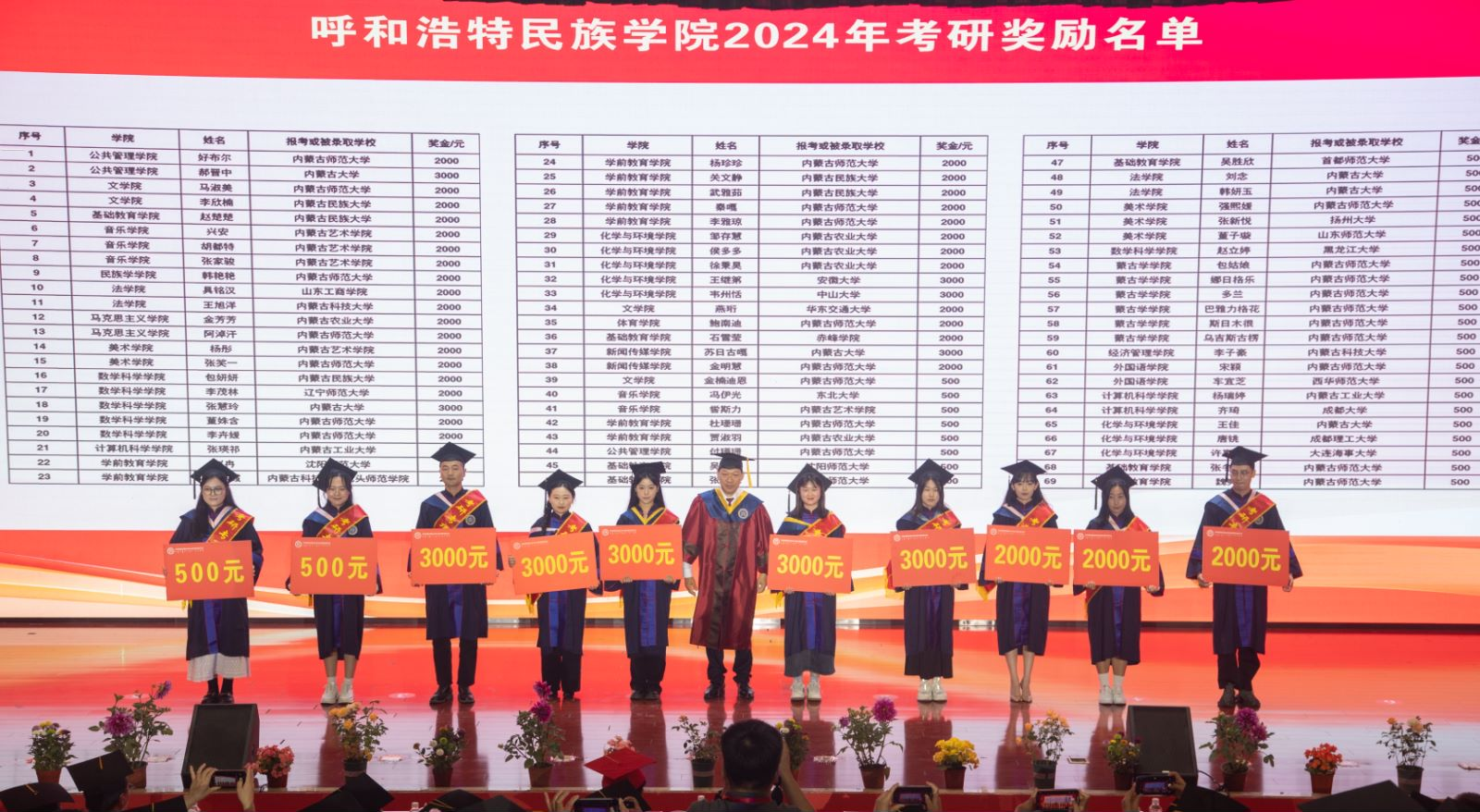 校领导为获得考研专项奖励的学生代表、校级优秀毕业生代表、优秀毕业论文(设计)的学生代表颁奖