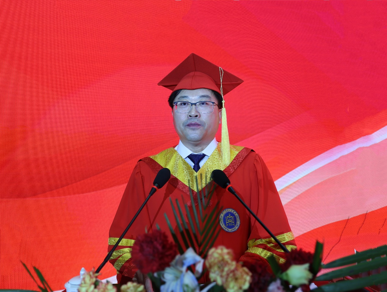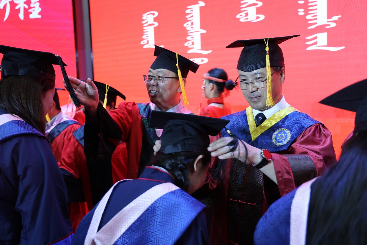 六月夏至见成长,清晨喜雨沐芳华,6月21日,学校在图书馆隆重举行2024年本科生毕业典礼暨学位授予仪式。校党委书记刘九万,党委副书记、校长韩伟新,党委副书记格根哈斯,党委委员、纪委书记、监察专员王冬梅,党委委员、副校长高喜天,党委委员、副校长额尔敦布和出席毕业典礼,各部门、各学院教师代表与600名2024届本科毕业生来到典礼现场,共同见证本科毕业这一人生中的重要时刻。毕业典礼由格根哈斯主持。