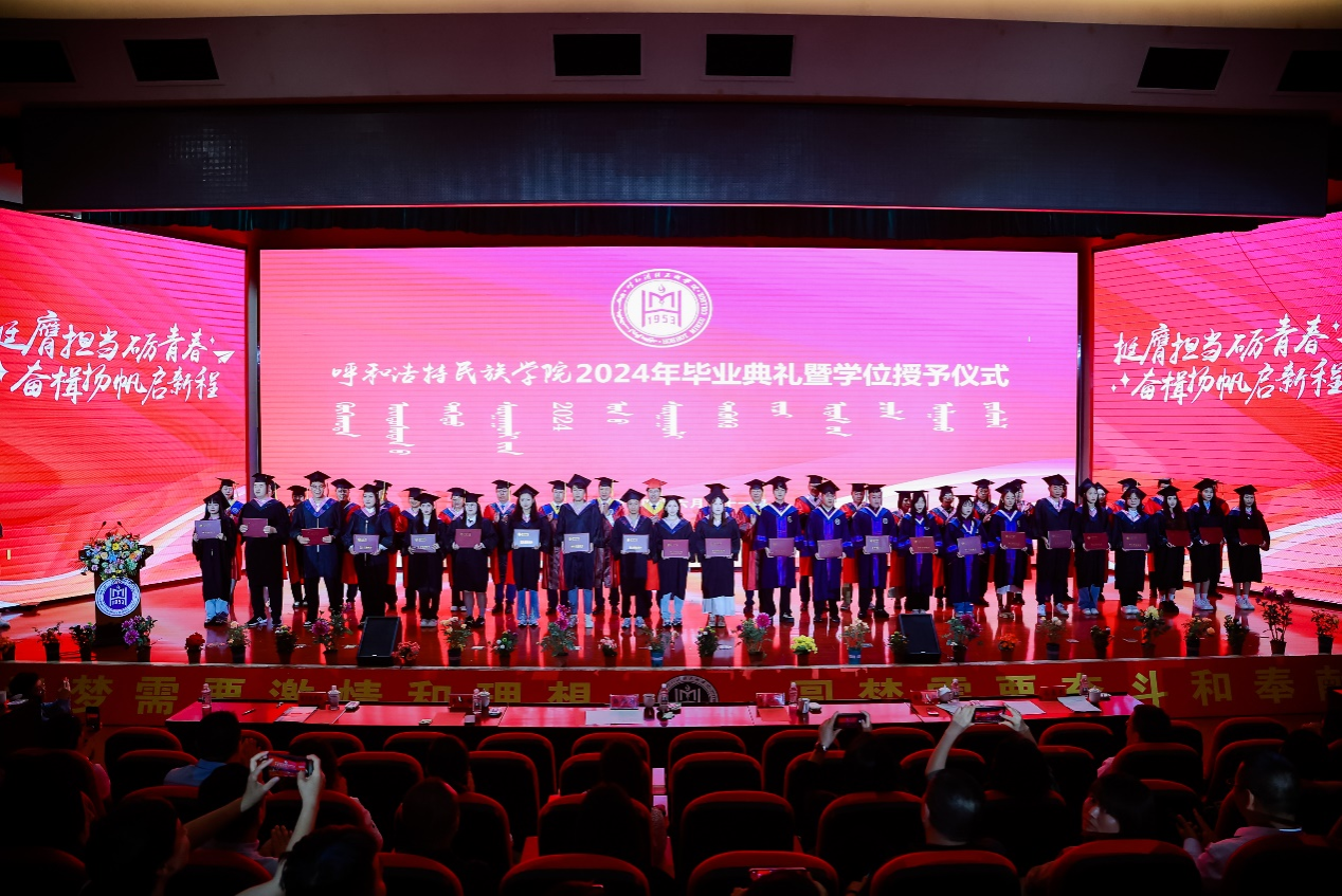 挺膺担当励青春、奋楫扬帆启新程。毕业典礼在《明天会更好》的合唱声中落下帷幕。2024届毕业生将铭记呼民院“崇正 尚智 务本 传承”的校训,满载师长祝福嘱托,担当起强国建设、民族复兴的重任,在新征程上继续创造属于自己的青春华章。