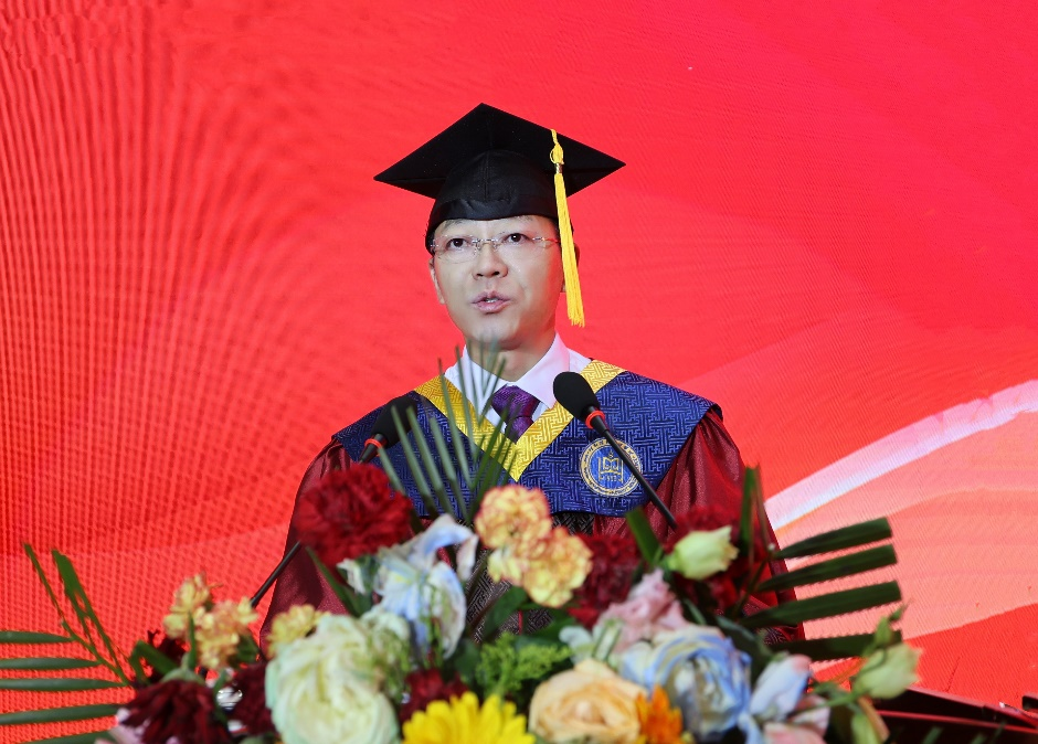 在题为《愿一切美好都会与你同行》的毕业致辞中,校长韩伟新深情回顾了2024届毕业生与母校一起度过的不平凡青春岁月和不一般大学时光。他表示,这四年,我们一起见证历史,一个个关键历史节点,一桩桩重大历史事件,我们不是旁观者,我们是亲历者、是见证者、是创造者。他勉励大家,要守牢立身之本,做爱国奉献的呼民院人;要铸牢精神之魂,做团结进步的呼民院人;要打牢成事之基,做艰苦奋斗的呼民院人。他希望,毕业生继续弘扬一往无前的蒙古马精神,矢志奋斗,自觉做能吃苦、肯奋斗的新时代青年,在不断磨砺中积累自信,在敢闯敢拼中练就真才实干,努力成为堪当民族复兴大任的时代新人。