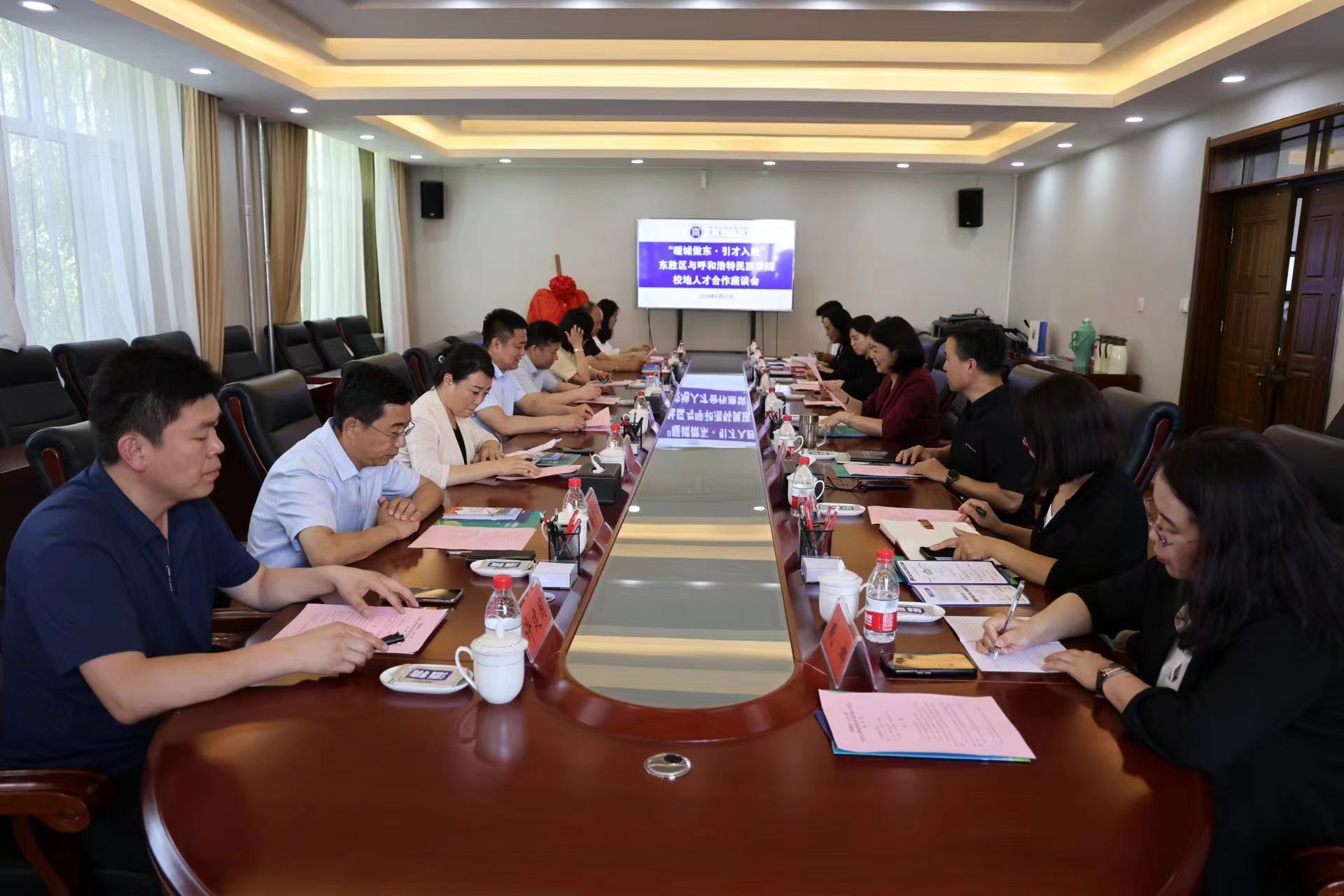 校党委书记刘九万会见了东胜区委常委、组织部部长刘春光一行,双方就发挥各自优势,全面加强务实合作,为进一步推进人才建设、铸牢中华民族共同体意识等方面进行深入交流。